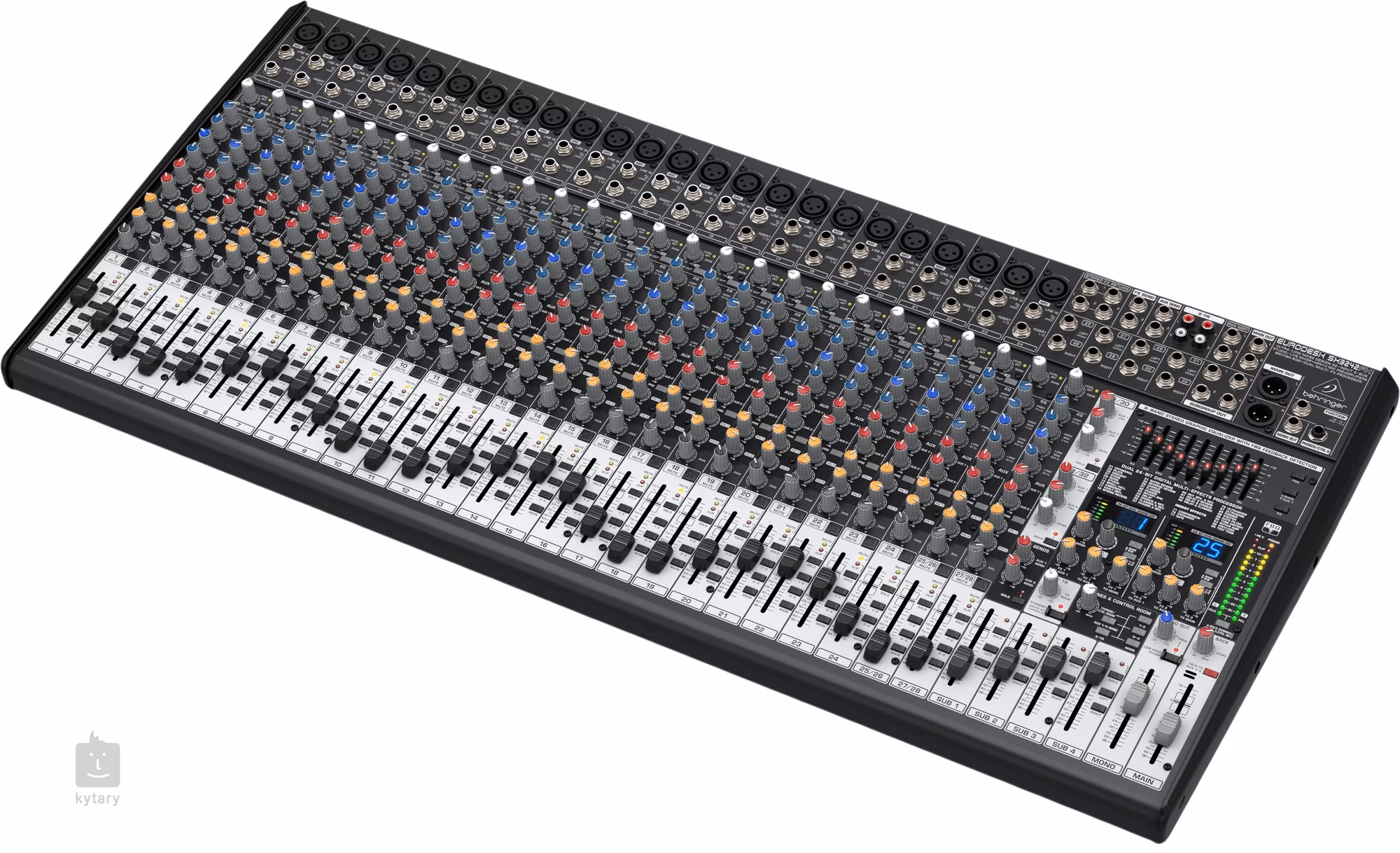 Každý kanál je vybaven 4pásmovým EQ ve stylu britských konzolí, který nabízí teplý, muzikální a přirozený zvuk i při výraznějších úpravách. K dispozici jsou 4 AUX sběrnice a 4 subgrupy pro flexibilní směrování signálu, stejně jako insertní body pro zapojení externích procesorů. Integrovaný 9pásmový grafický EQ umožňuje přesné doladění hlavního nebo monitorového mixu.