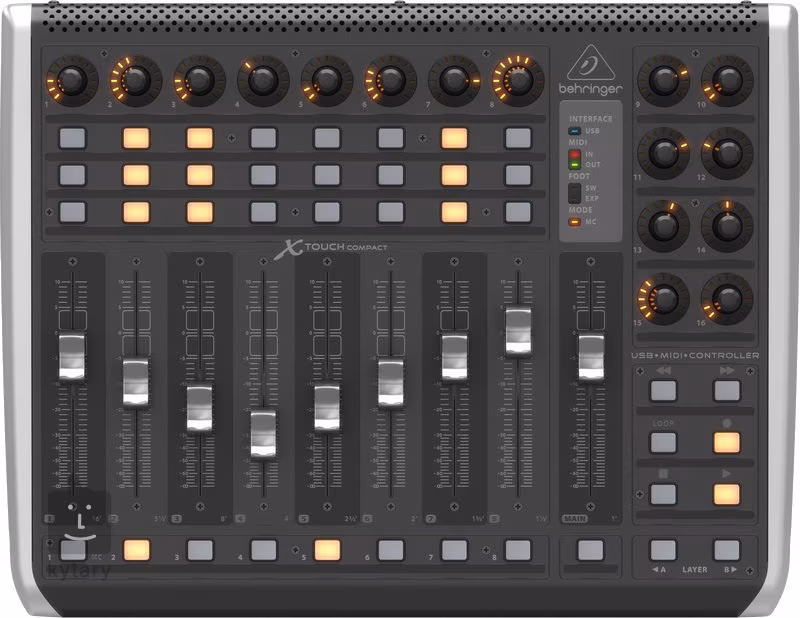 Behringer X-Touch Compact je univerzální MIDI kontrolér, který vás při produkci odstřihne od myši a klávesnice. Díky protokolu Mackie spolupracuje s drtivou většinou DAW, motorizované fadery a otočné knoby vám potom poskytnou maximální kontrolu nad vaším projektem.