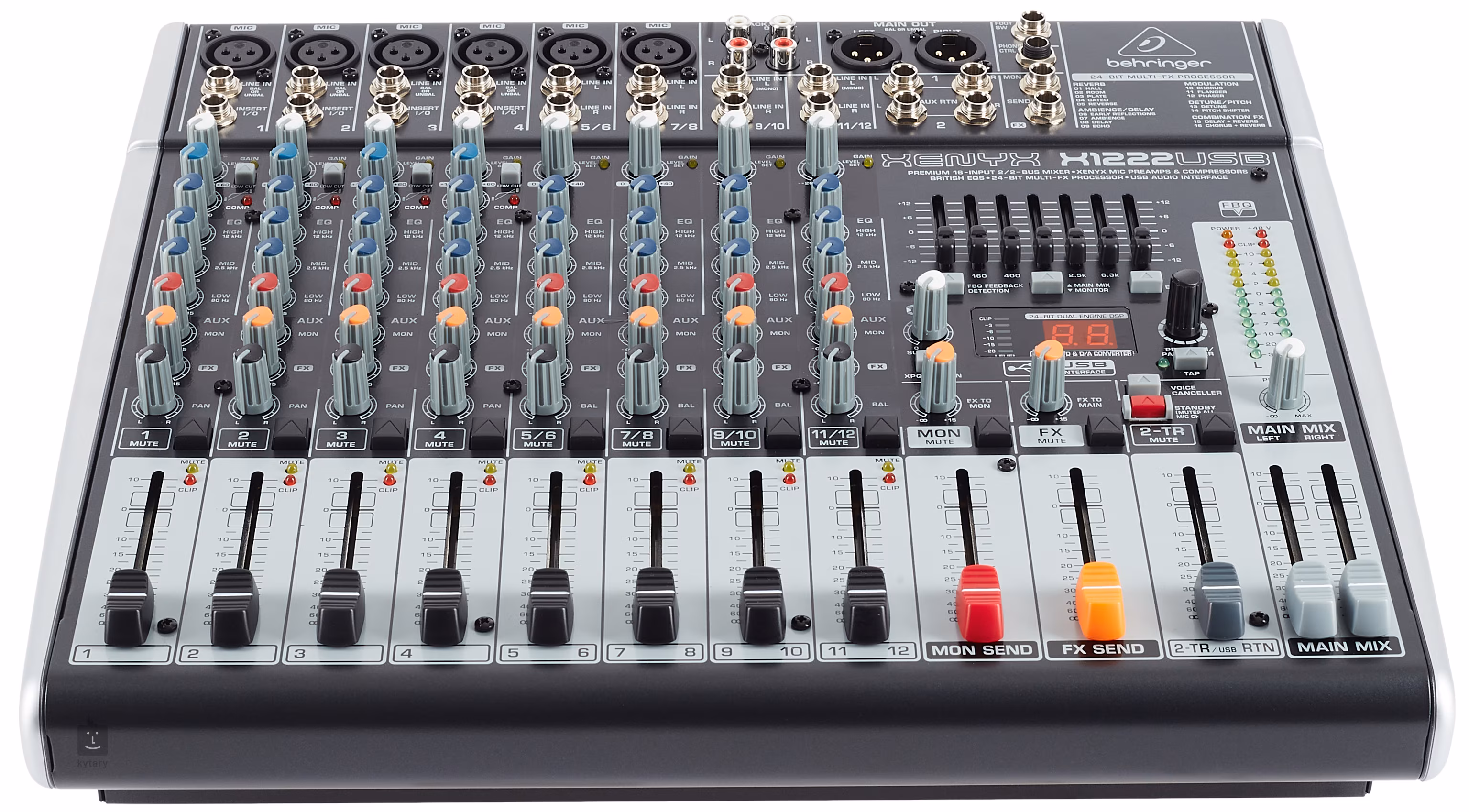 Xenyx X1222USB je mixážní pult, který nabízí 16 vstupů, 2/2 bus sběrnice, zabudovaný kompresor, multiefekt a USB rozhraní pro zaznamenání mixu přímo do počítače.