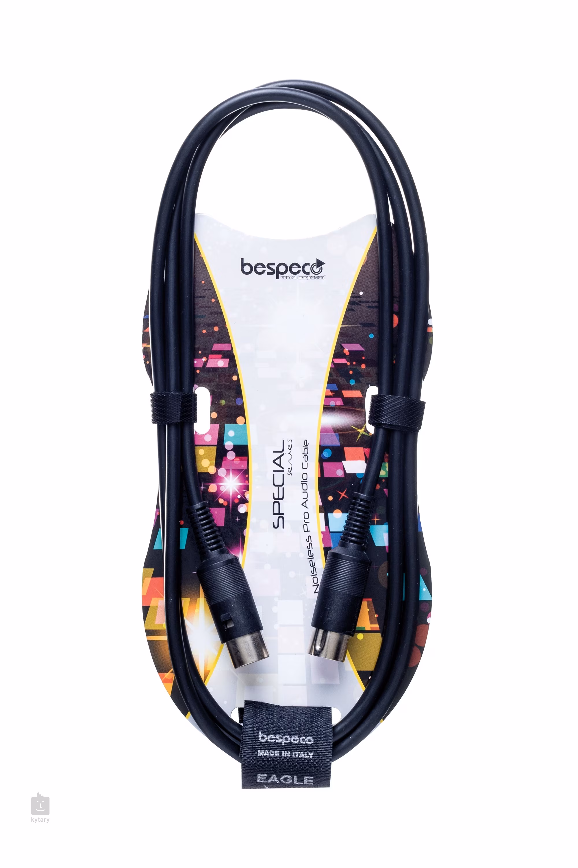 MIDI profilovaný kabel s 5pólovými DIN konektory. Tento kabel spadá do Bespeco Special Series, která sdružuje kabely vhodné pro nejrůznější aplikace – audio, digitální audio, video, MIDI, Ethernet, napájení, bezdrátové systémy, propojení fotoaparátů s rekordérem, DMX a další. Kabely mají vodiče vyrobené z 98% bezkyslíkaté mědi (OFC) a jsou opláštěné odolným PVC a vulkanizovaným silikonem, které jim zaručuje dlouhou životnost a zároveň flexibilitu.