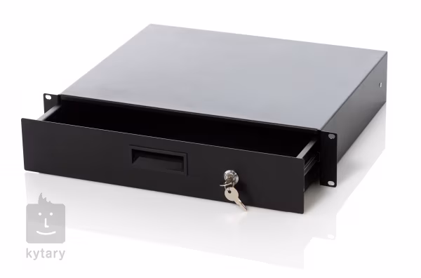 Uzamykatelná železná polička se dvěma přihrádkami. Vhodná do racku 19" 2U.