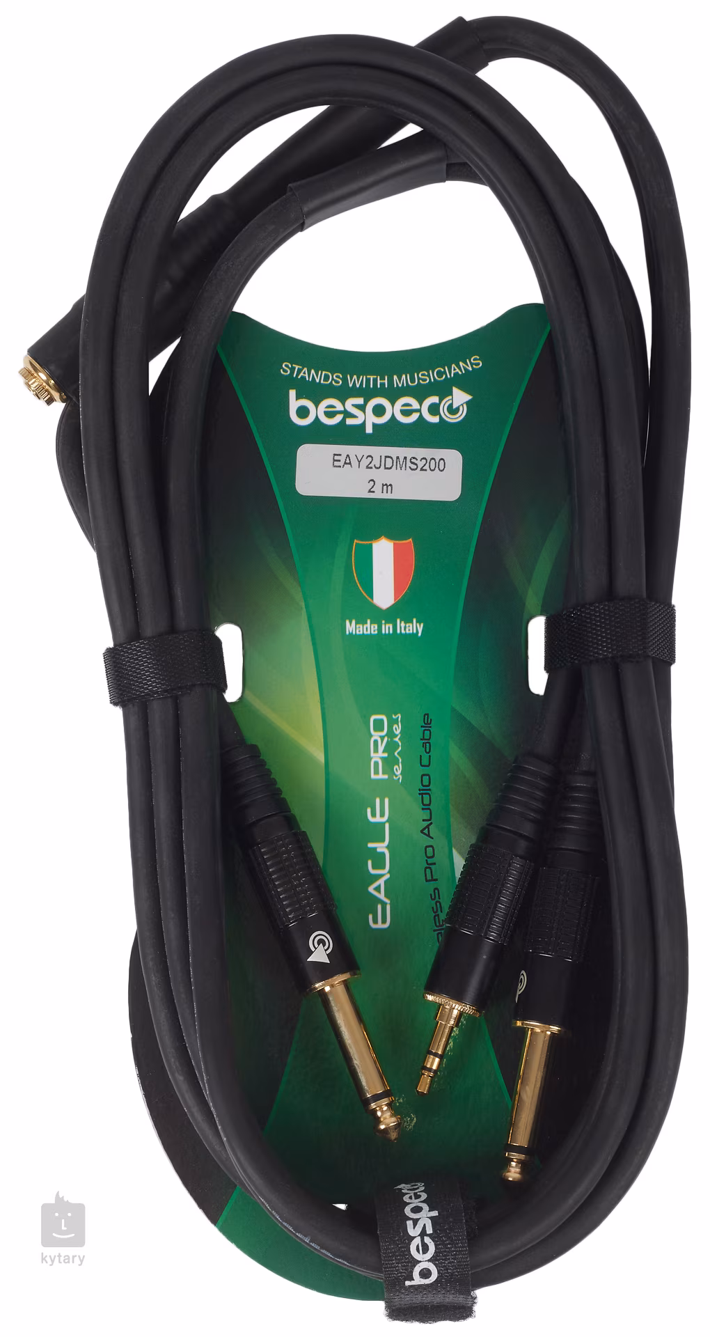 Tento nástrojový a sluchátkový kabel ze série Bespeco Eagle Pro disponuje vodičem z 98% bezkyslíkaté mědi (OFC) a vnitřním polovodivým PVC pláštěm, díky němuž neprodukuje žádný šum. Ke kvalitě zvuku přispívá i spirálové stínění na více jak 92 procentech vodiče nebo pozlacené jacky s hliníkovým tělem. Samozřejmostí je odolné a zároveň flexibilní opláštění z PVC a vulkanizovaného silikonu. Kromě dvou nástrojových konektorů disponuje také konektorem jack 3,5 mm (M) pro sluchátka a vstupem pro jack 3,5 mm (F).