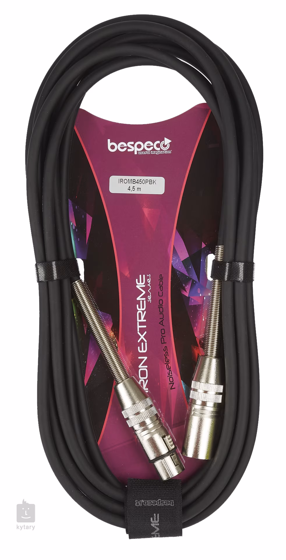 Tento mikrofonní kabel ze série Bespeco Iron Extreme disponuje vodičem z 98% bezkyslíkaté mědi (OFC) a vnitřním polovodivým PVC pláštěm, díky němuž neprodukuje žádný šum. Ke kvalitě zvuku přispívá i spirálové stínění na více jak 92 procentech vodiče nebo pozlacené konektory s kovovým tělem. Samozřejmostí je odolné a zároveň flexibilní opláštění z PVC a vulkanizovaného silikonu.