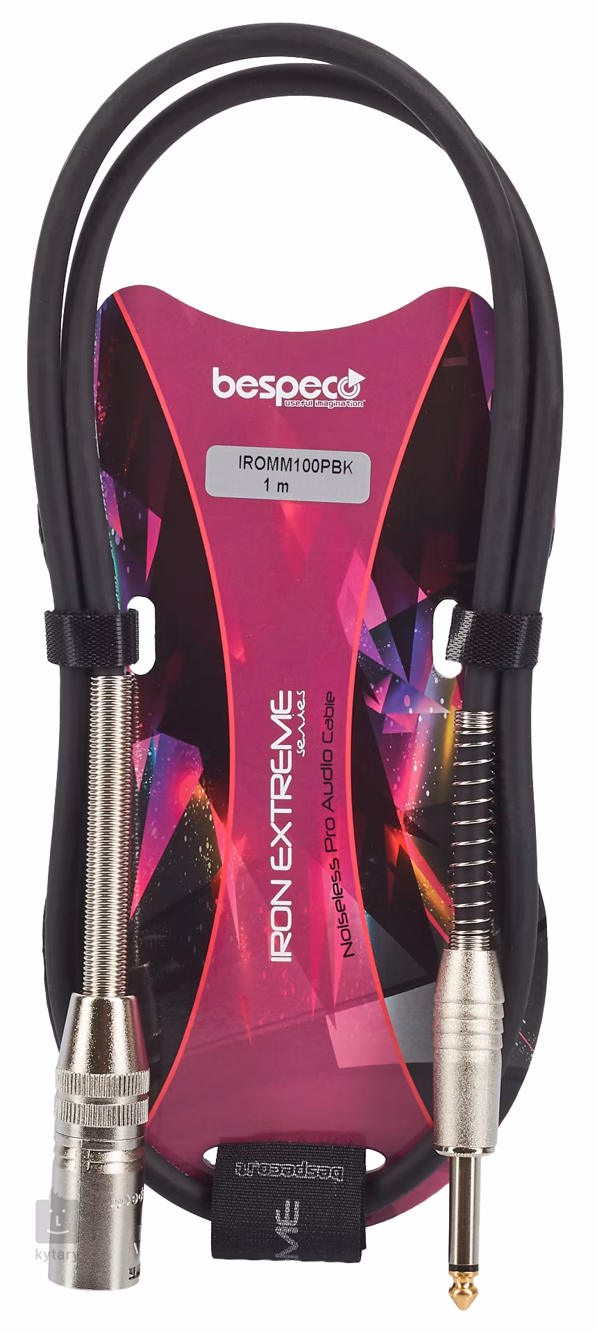 Mikrofonní kabel s profesionálními kovovými konektory XLR(M) a Jack 6.3mm. Tento nástrojový kabel ze série Bespeco Iron Extreme disponuje vodičem z 98% bezkyslíkaté mědi (OFC) a vnitřním polovodivým PVC pláštěm, díky němuž neprodukuje žádný šum. Ke kvalitě zvuku přispívá i spirálové stínění na více jak 92 procentech vodiče nebo pozlacené jacky s kovovým tělem. Samozřejmostí je odolné a zároveň flexibilní opláštění z PVC a vulkanizovaného silikonu.