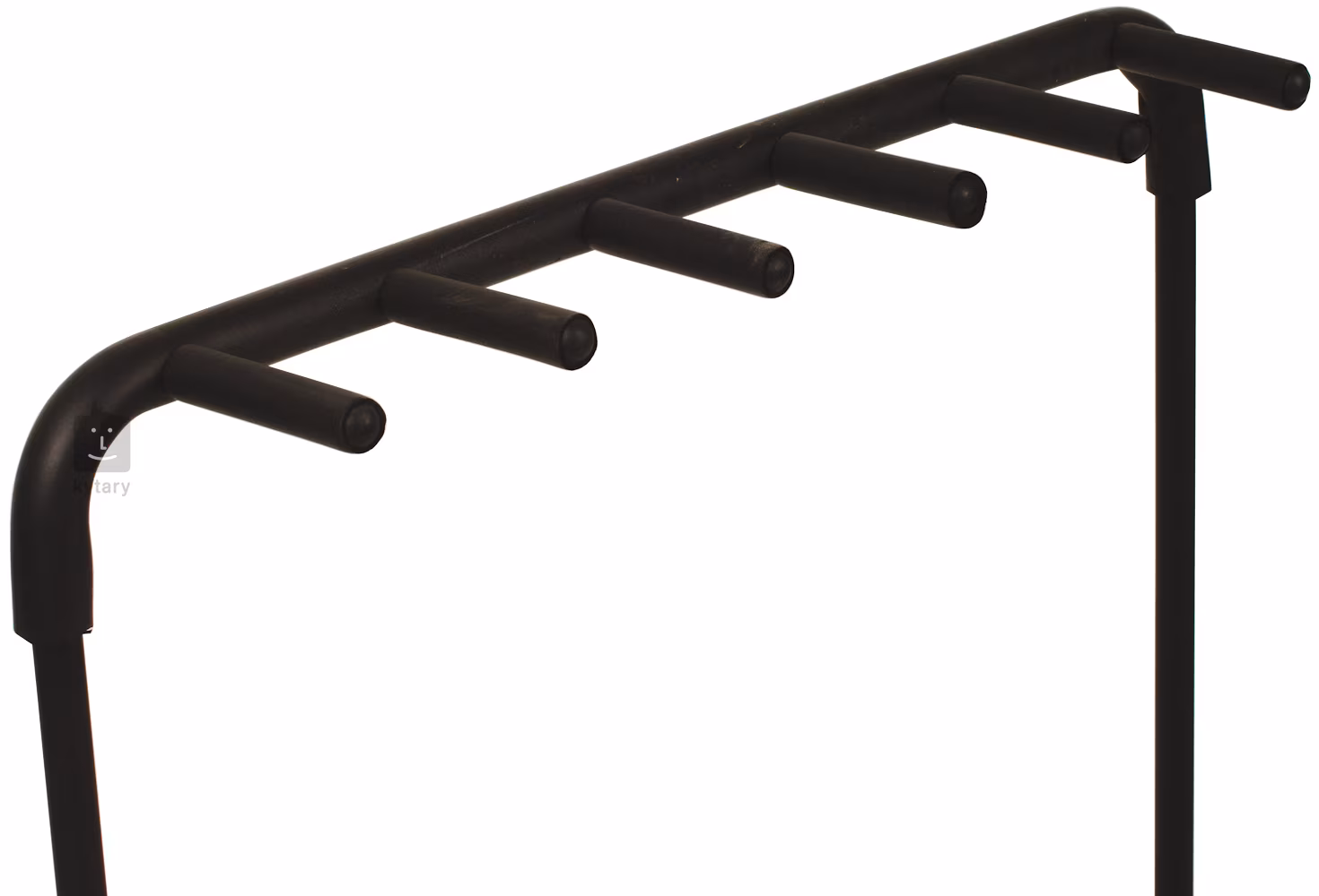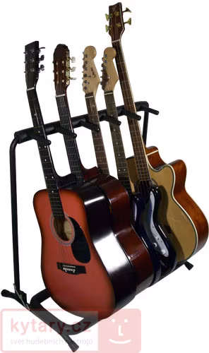 Nový složitelný stojan s univerzální ochranou obručí pro 5 elektrických a klasických/akustických/basových kytar. Všechny konce jsou pogumovány pro ochranu nástroje.
