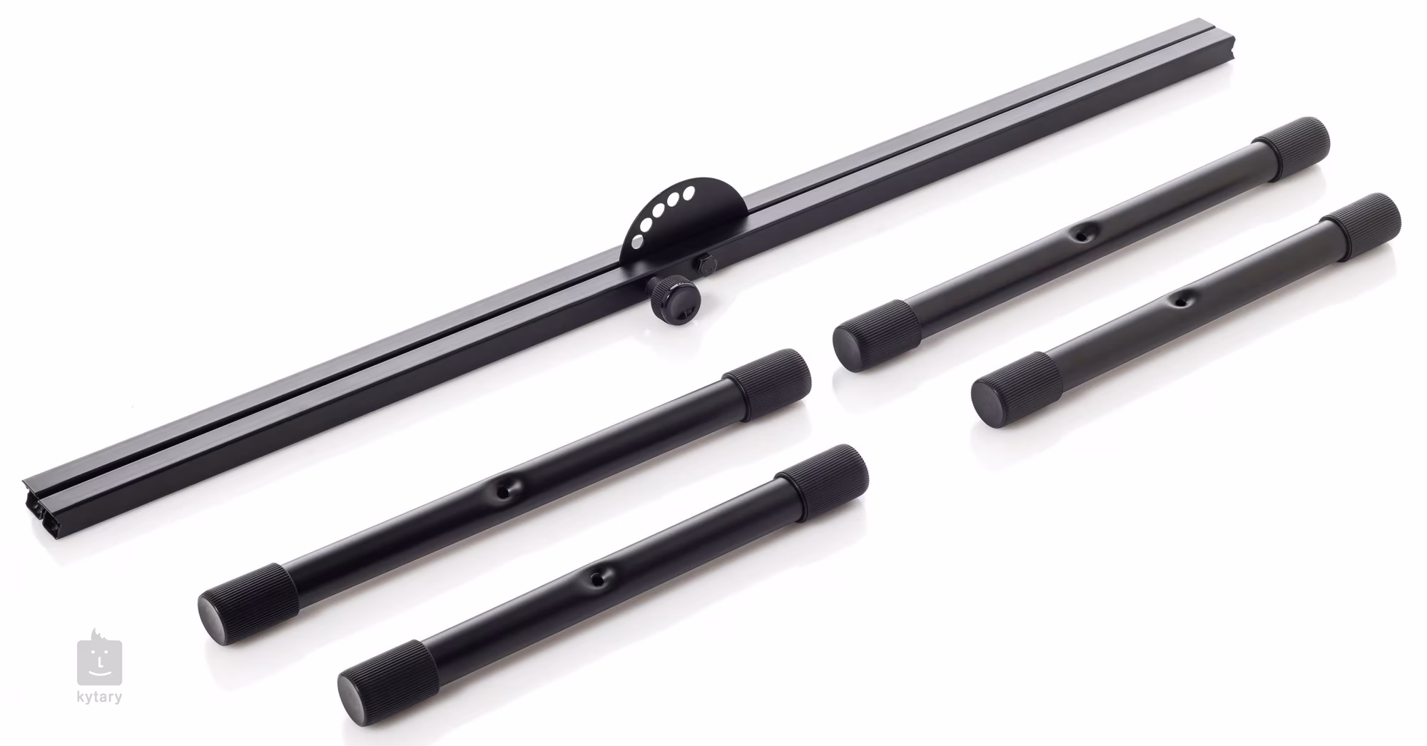 Klávesový stojan typu X z oceli, plně rozložitelný, lehce skladný, nastavitelný na výšku a šířku pomocí uzamykatelné spony.