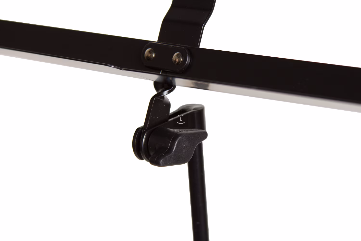 Profesionální pevný hliníkový notový stojan s obalem. Výškově nastavitelný ve třech stupních. Rozměr tabule: 430 x 220 mm. Nosnost 2 kg.