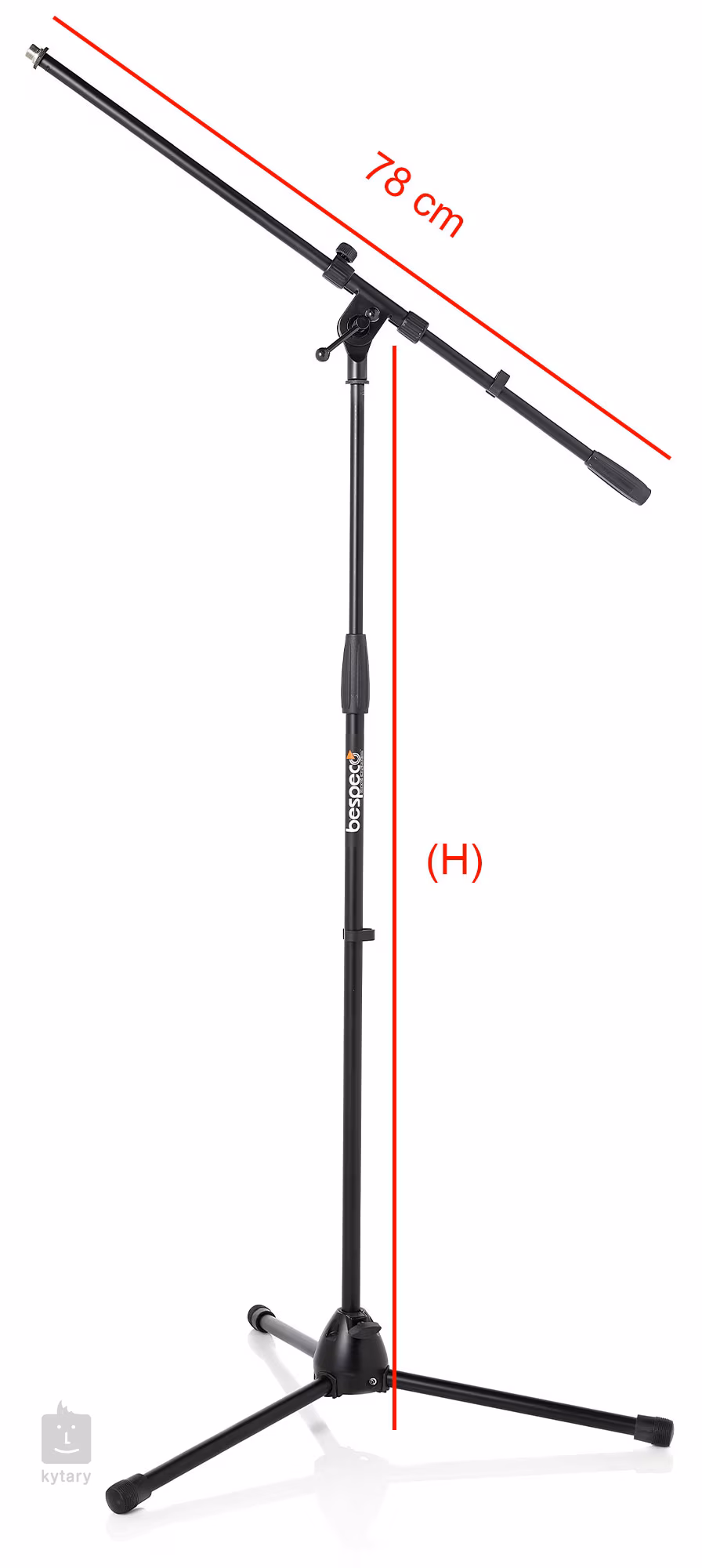 Profesionální mikrofonní stojan s pevným ramenem (78 cm), se středovým kloubem, kovovou základnou, ergonomickou spojkou a protizávažím ze zatíženého nylonu. Nohy jsou opatřeny antivibračními gumovými podložkami. Stojan je díky své stabilitě mimořádně vhodný pro každou situaci.