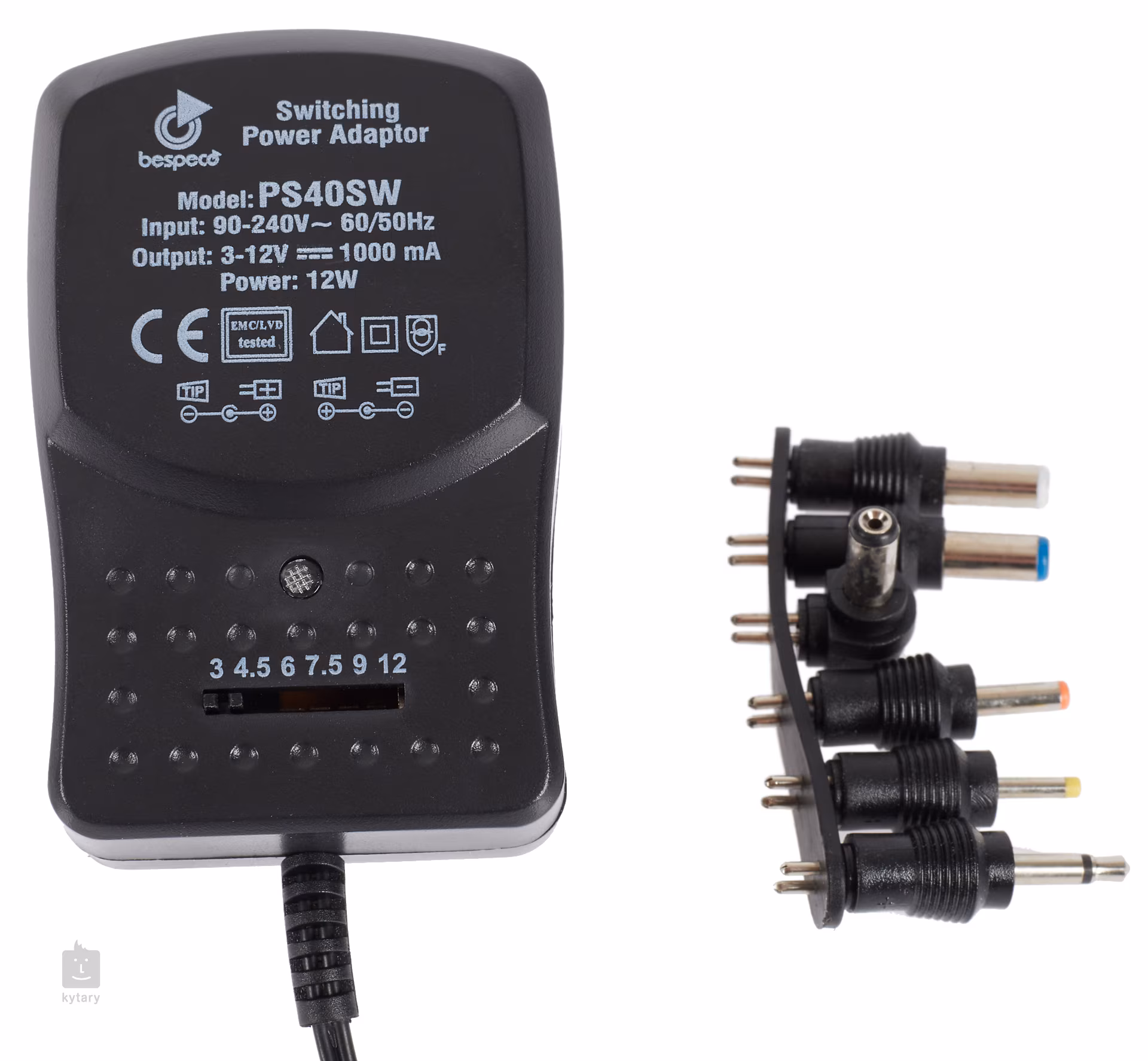 Univerzální síťový adaptér s nastavitelným napětím (3 / 4,5 / 6 / 7,5 / 9 / 12 V), proudem 1000 mA, přepínatelnou polaritou a vyměnitelnými koncovkami. Disponuje 1,5 m kabelem a kromě hudebních nástrojůje vhodný rovněž pro TV, rádia, CD přehrávače, hračky, kalkulačky, telefony atd.