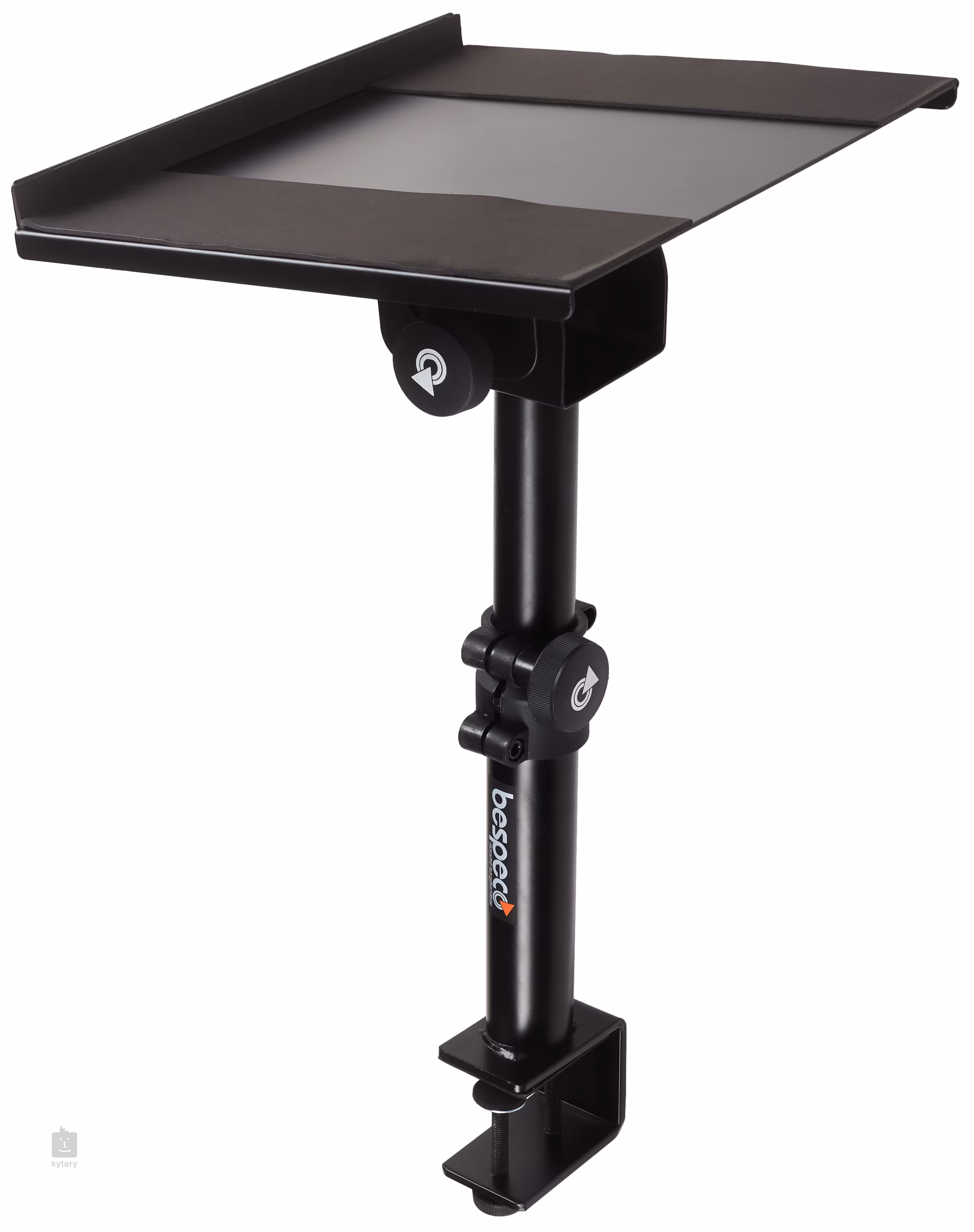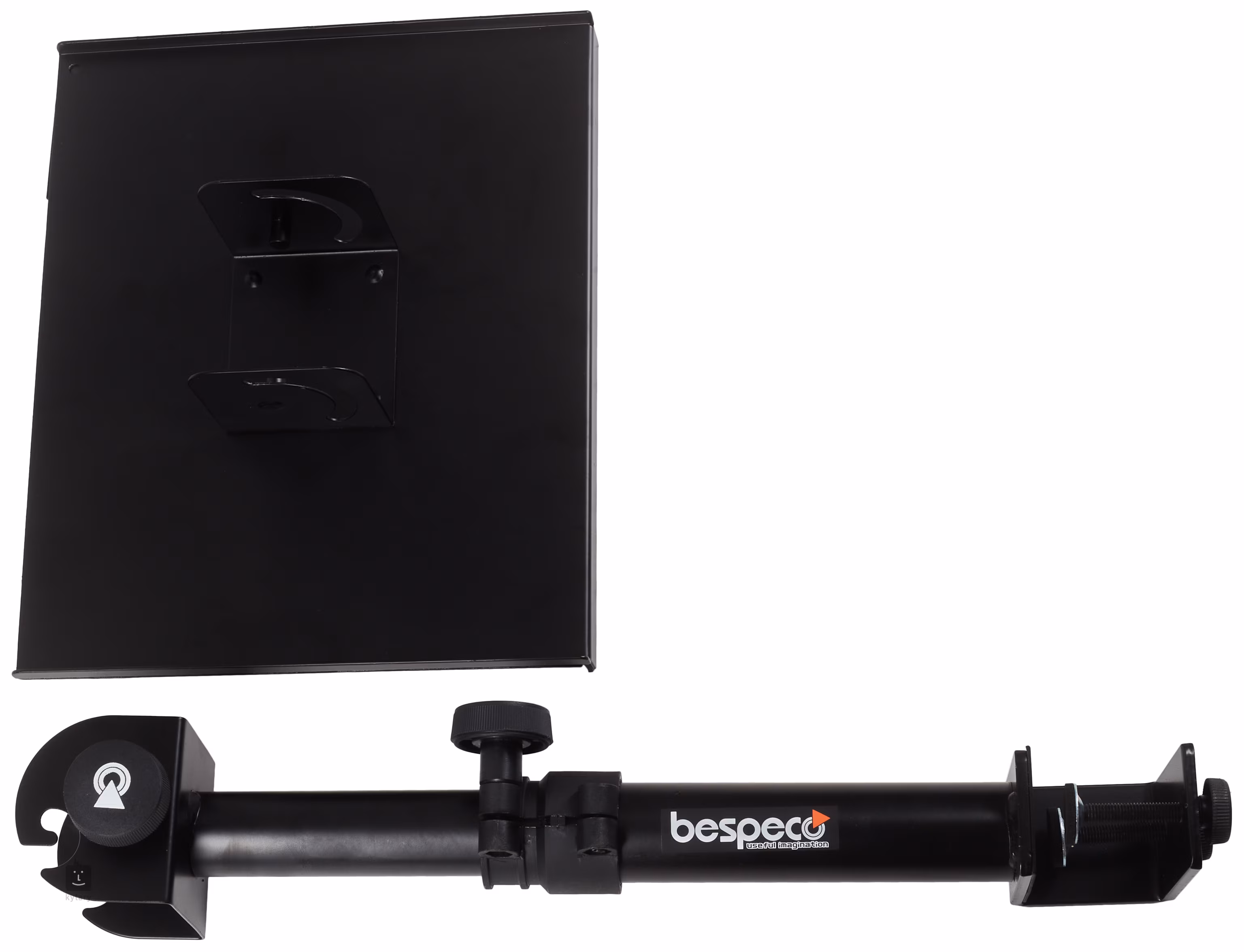 Multifunkční držák s rovnou plochou o rozměrech 300 x 200 mm, který má místo základny svorku, vhodnou k uchycení například na pracovní stůl.