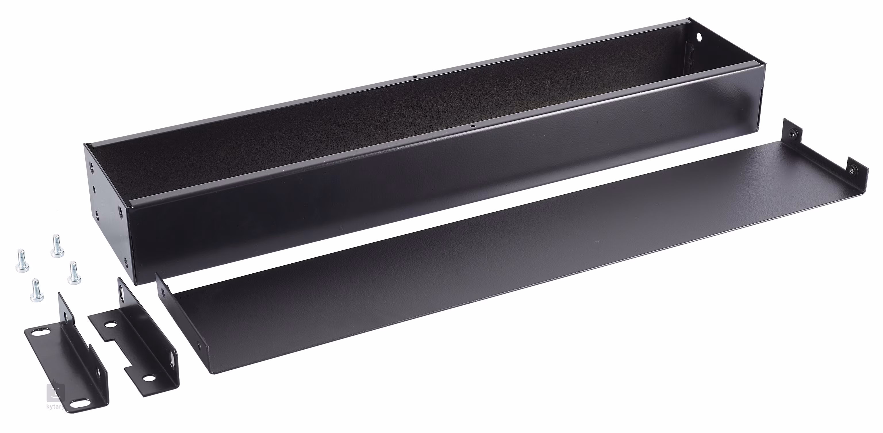 Zaslepující lišta do rackového systému o výšce 2U. Součástí balení jsou montážní šroubky.