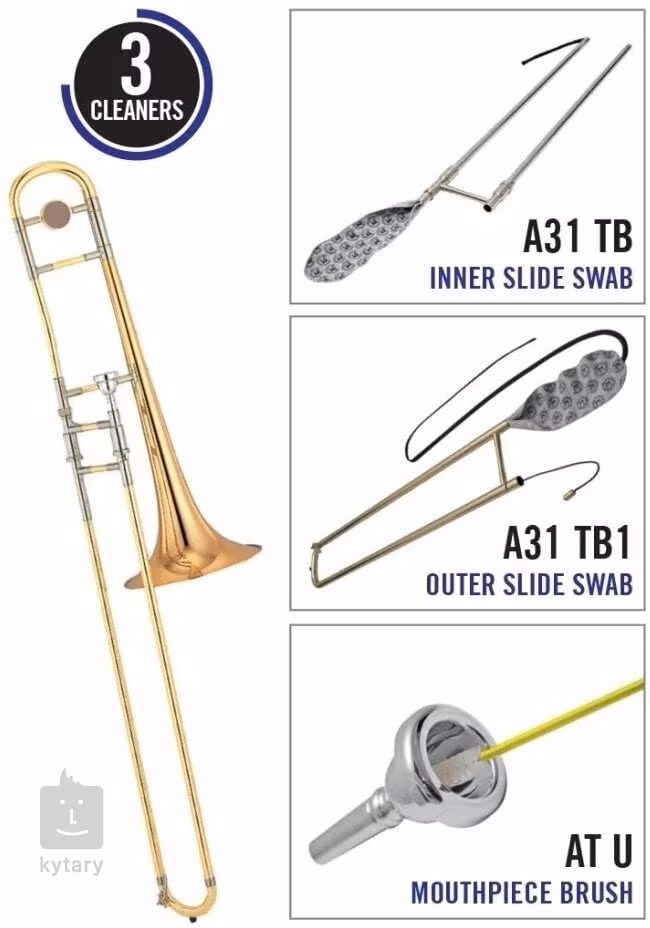 Set CPTB Set Trombone obsahuje vytěrák na vnitřní snižec trombonu, vytěrák na vnější snižec trombonu a vytěrák na nátrubek.