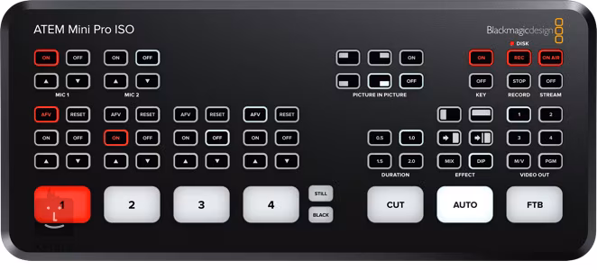 Režie ATEM Mini Pro ISO se záznamem až 5 stop videa (4x vstupy, 1x výstup pořadu) na ext. USB disk a možností opětovného sestřihu záznamu po ukončení vysílání pořadu! Poskytuje uživatelům čistý záznam všech vstupů pro pozdější offline střih prostřednictvím funkcí pro multikamerový střih. Model ATEM Mini Pro ISO ukládá také veškeré audio stopy, grafiku i projekt aplikace DaVinci Resolve pro maximálně snadnou postprodukci!