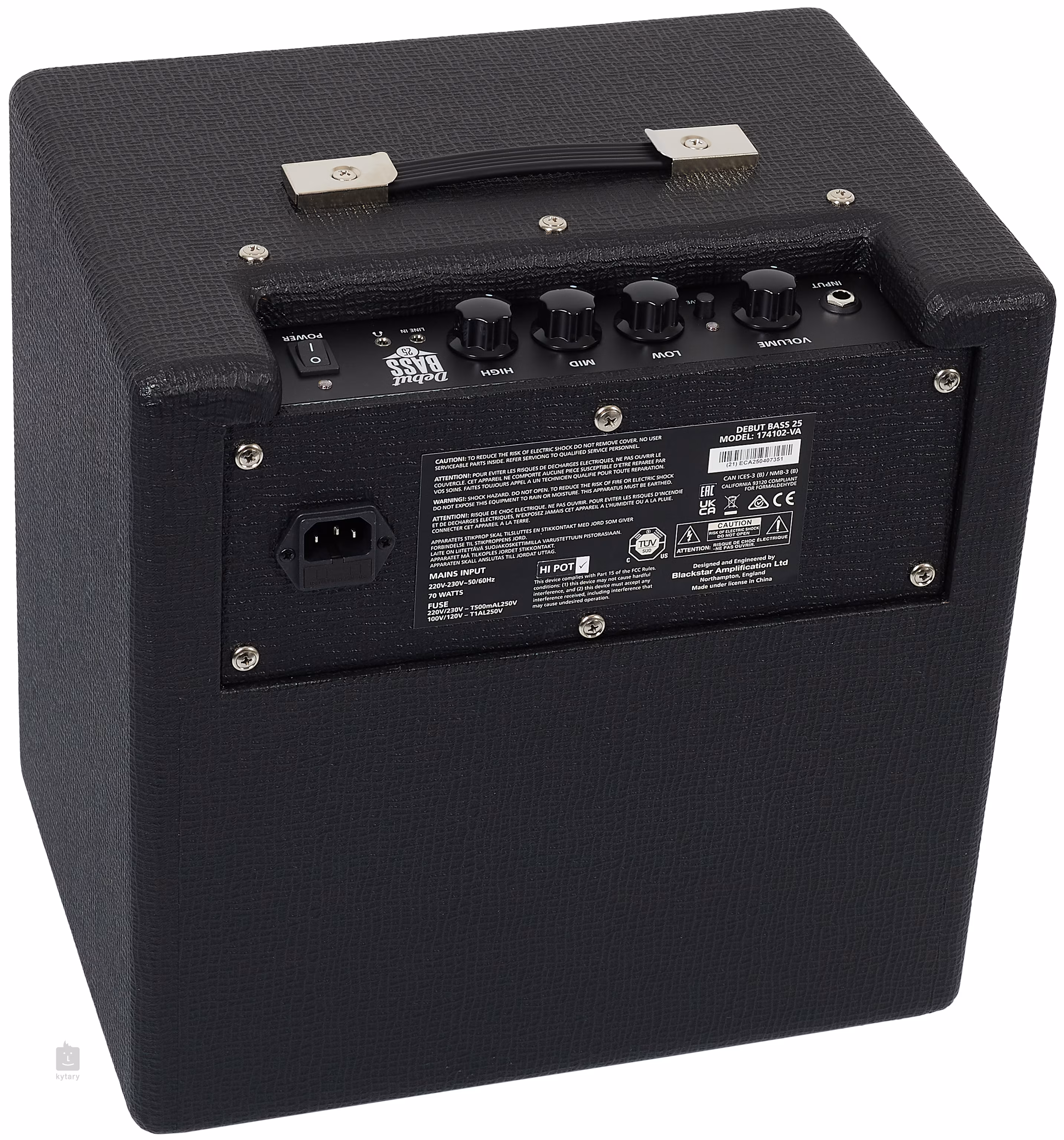Na zadní straně aparátu najdete vstup pro napájecí kabel, který je součástí balení. Kombo je vyvedeno v elegantní černé barvě, která zapadne do jakéhokoliv interiéru a podtrhne estetiku každé rockové kapely. Pokud hledáte perfektní kombo pro domácí hraní, nemusíte hledat dále – Debut Bass 25 vám dá přesně to, co potřebujete!