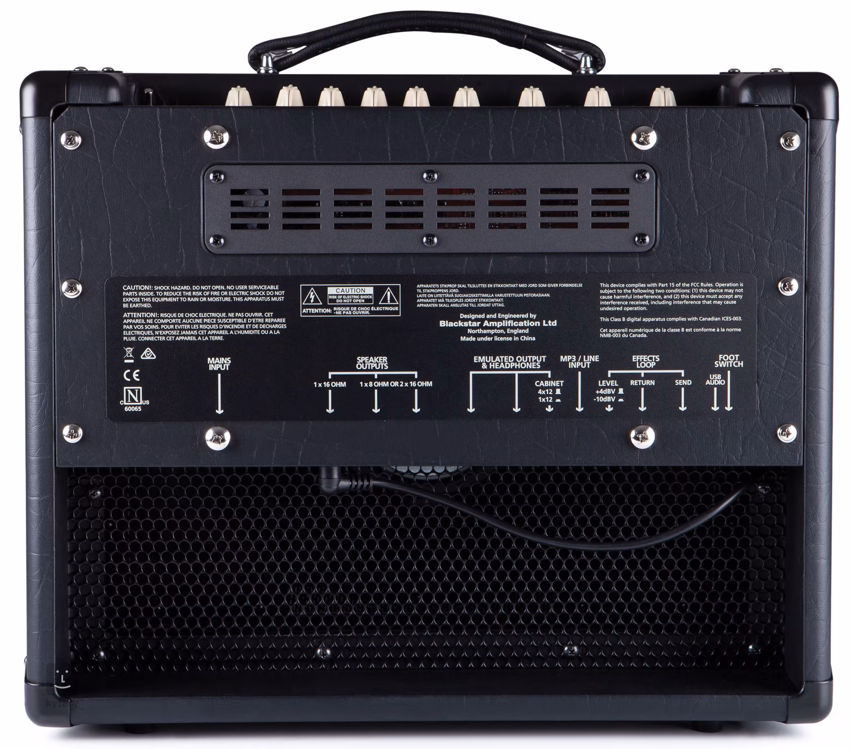 Skutečný posun oproti základním verzím řady HT přináší konektory a s tím rozšířené možnosti zapojení a výstupů. Zadní panel nabízí vstup/výstup efektové smyčky pro integraci vašich oblíbených krabiček, tři výstupy do externích reproboxů (1x 16, 1x 8, 2x 16 ohmů), sluchátkový/linkový výstup s emulací reproduktoru, XLR DI výstup, mp3/audio vstup, vstup pro footswitch a USB Audio konektor, takže můžete jednoduchým způsobem převést parádní lampový zvuk na nahrávku.