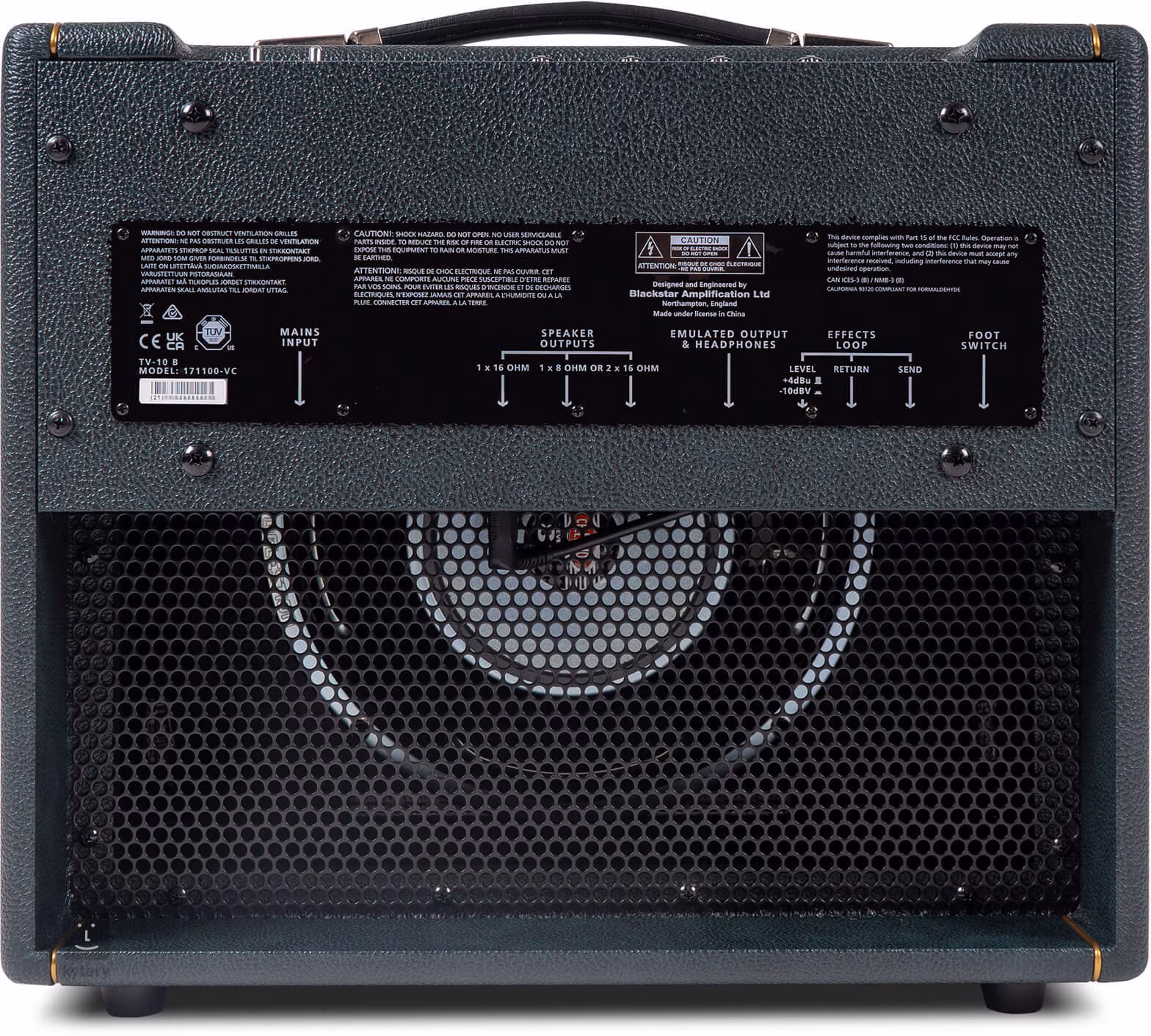 Zadní panel komba pak nabízí vstup pro footswitch (součástí balení je footswitch s jedním tlačítkem pro aktivaci kanálu Boost, ale kombo je kompatibilní také s dvoutlačítkovým footswitchem pro ovládání kanálu Boost a reverbu), konektory Send a Return pro integraci efektové smyčky, výstup s emulací reproduktorů, který lze využít také jako sluchátkový výstup a tři reproduktorové výstupy s impedancí 1x 16 Ohm, 1x 8 Ohm nebo 2x 16 Ohm. O prvotřídní zvukovou reprodukci se stará 12” reproduktor Celestion Seventy-80.