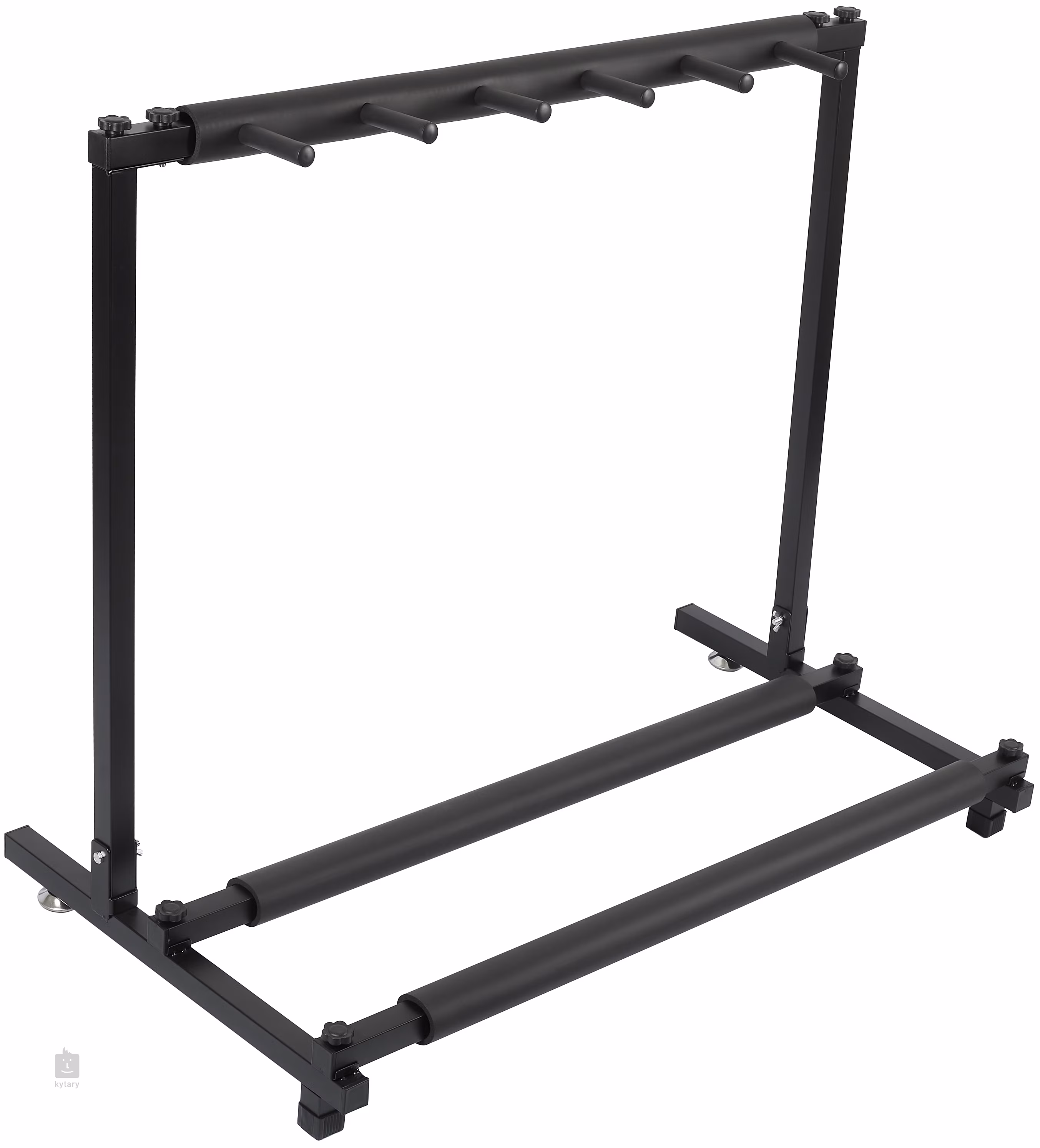 Množí se vám doma kytary a už je nemáte kam dávat? Tento stojan od značky Blond nabízí ideální řešení v podobě praktického multistojanu pro více nástrojů – tento model pojme až pět kytar a ušetří vám místo v obýváku, ve zkušebně nebo na pódiu. Konstrukce je vyrobena z bytelného kovu a potažena ochrannou vrstvou z měkké pěny, která chrání dřevo a lak nástrojů před poškozením.