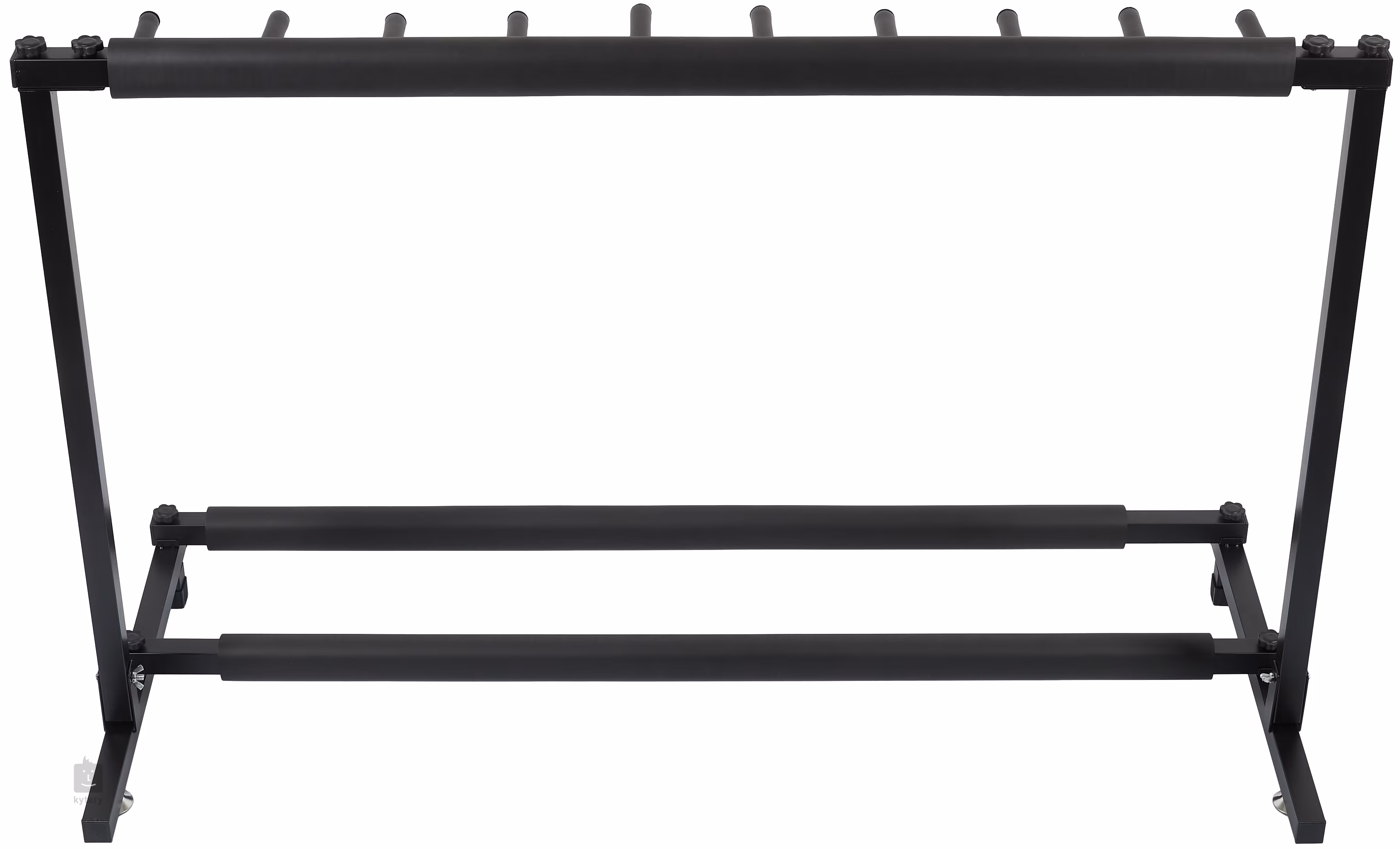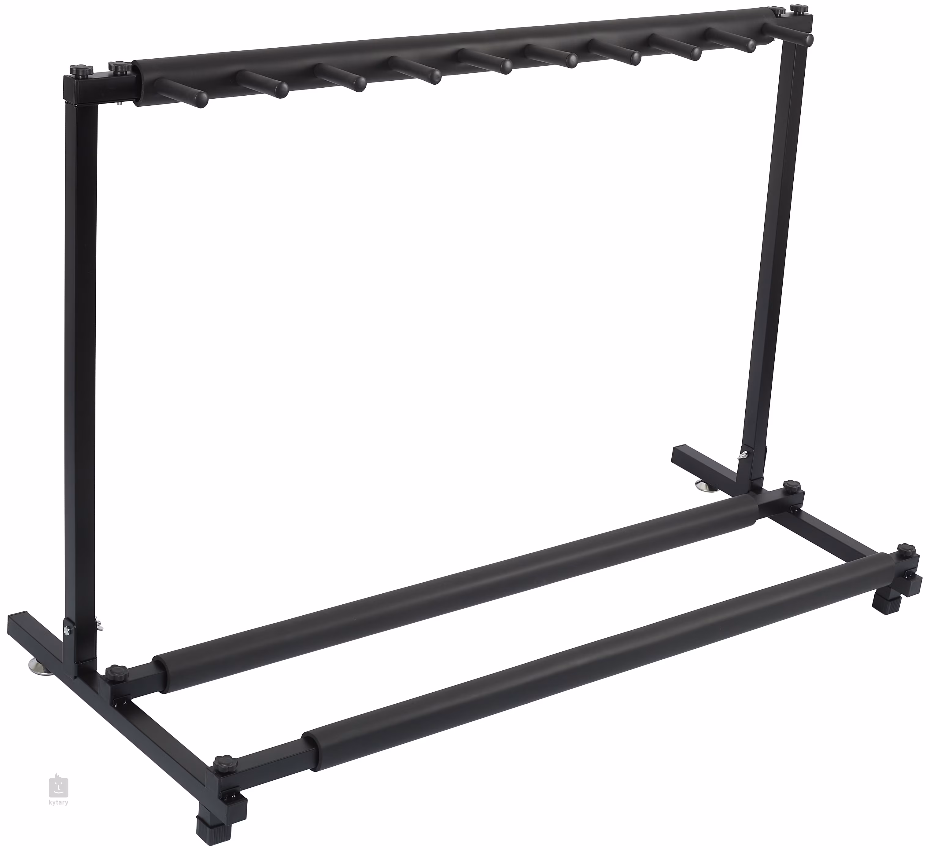 Množí se vám doma kytary a už je nemáte kam dávat? Tento stojan od značky Blond nabízí ideální řešení v podobě praktického multistojanu pro více nástrojů – tento model pojme až devět kytar a ušetří vám místo v obýváku, ve zkušebně nebo na pódiu. Konstrukce je vyrobena z bytelného kovu a potažena ochrannou vrstvou z měkké pěny, která chrání dřevo a lak nástrojů před poškozením.
