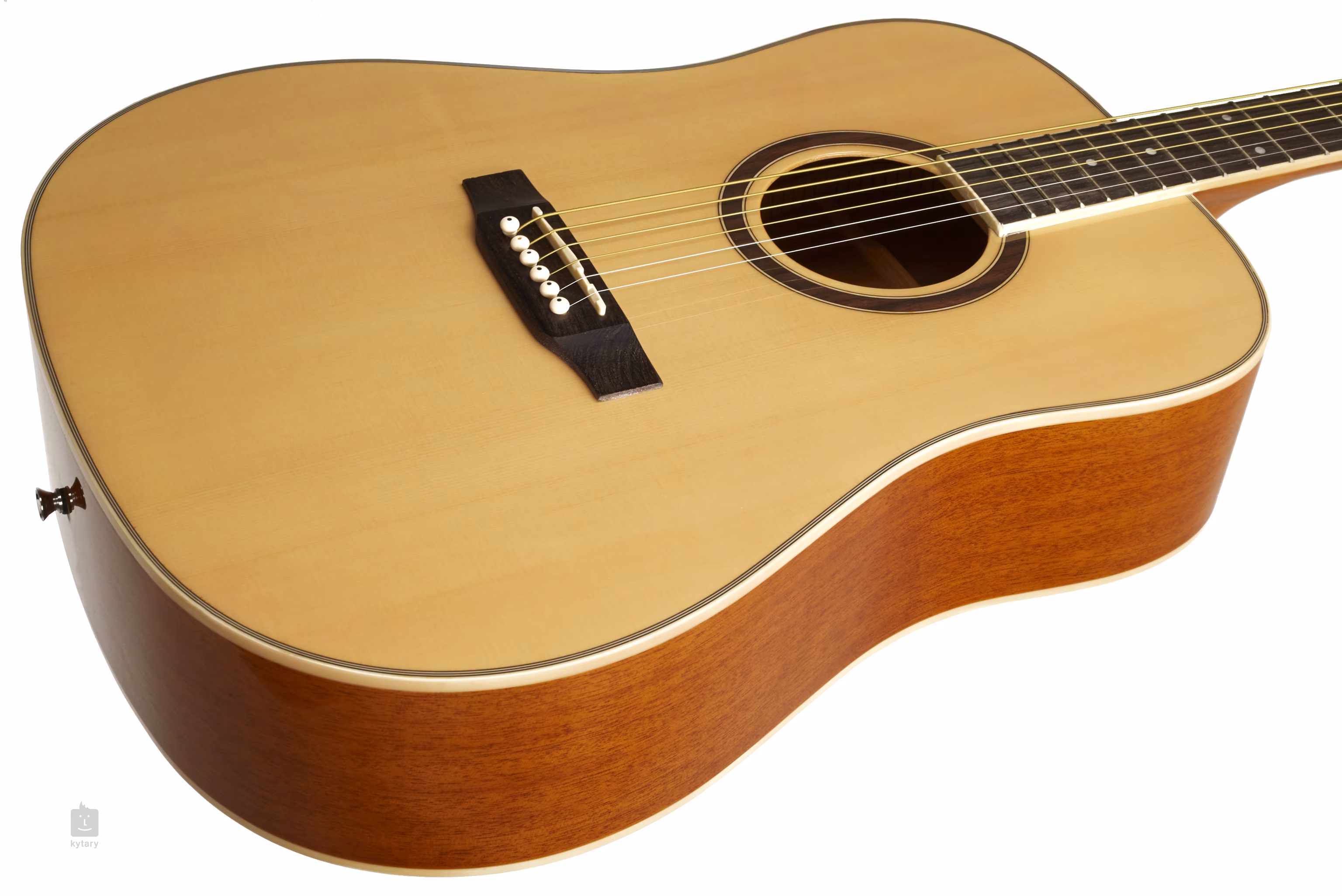 Model akustické kytary Melody je klasický Dreadnought s velkým rezonantním tělem. Vrstvený korpus kytary je zhotoven z přední smrkové desky a zadní desky a lubů z laminovaného mahagonového dřeva. Díky standardní menzuře hmatníku i šířce nultého pražce nabízí herní komfort, který ocení většina kytaristů. Kromě praktických prvků v podobě uchycení strun v chromovaných Die-Cast mechanikách nebo pozičních teček pro snadnou orientaci na hmatníku se kytara může pochlubit i decentním zpetřením strohého designu v podobě oboustranné lemovky těla nebo rozety.