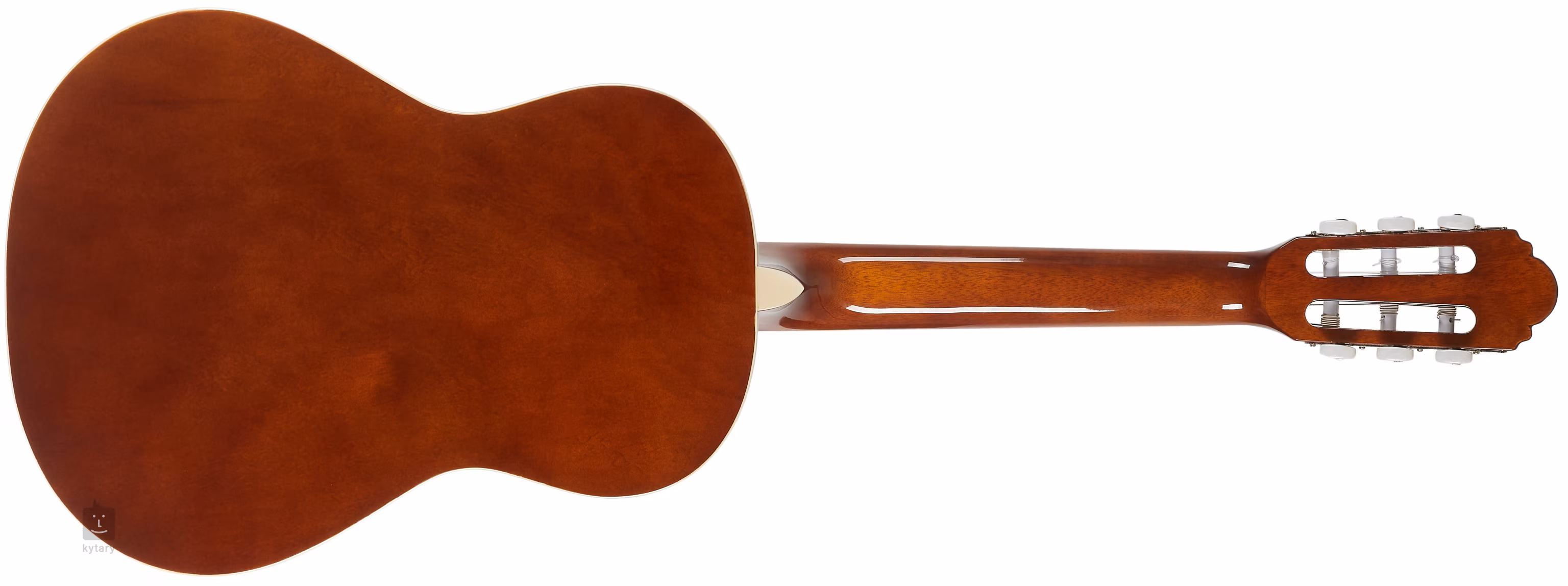 Dětská klasická kytara Blond OC-34 NAT v 3/4 velikosti nabízí tělo zhotovené z vrstveného smrku a lípy, krk ze dřeva okoumé a hmatník a kobylku z moderního kompozitního materiálu. Struny jsou přes plastový nultý pražec uchyceny v klasických chromovaných mechanikách s bílými kolíčky. Stylové zpracování podtrhuje nanesený lesklý lak a tradiční prvky v podobě dekorativní rozety a plastové lemovky (ABS).