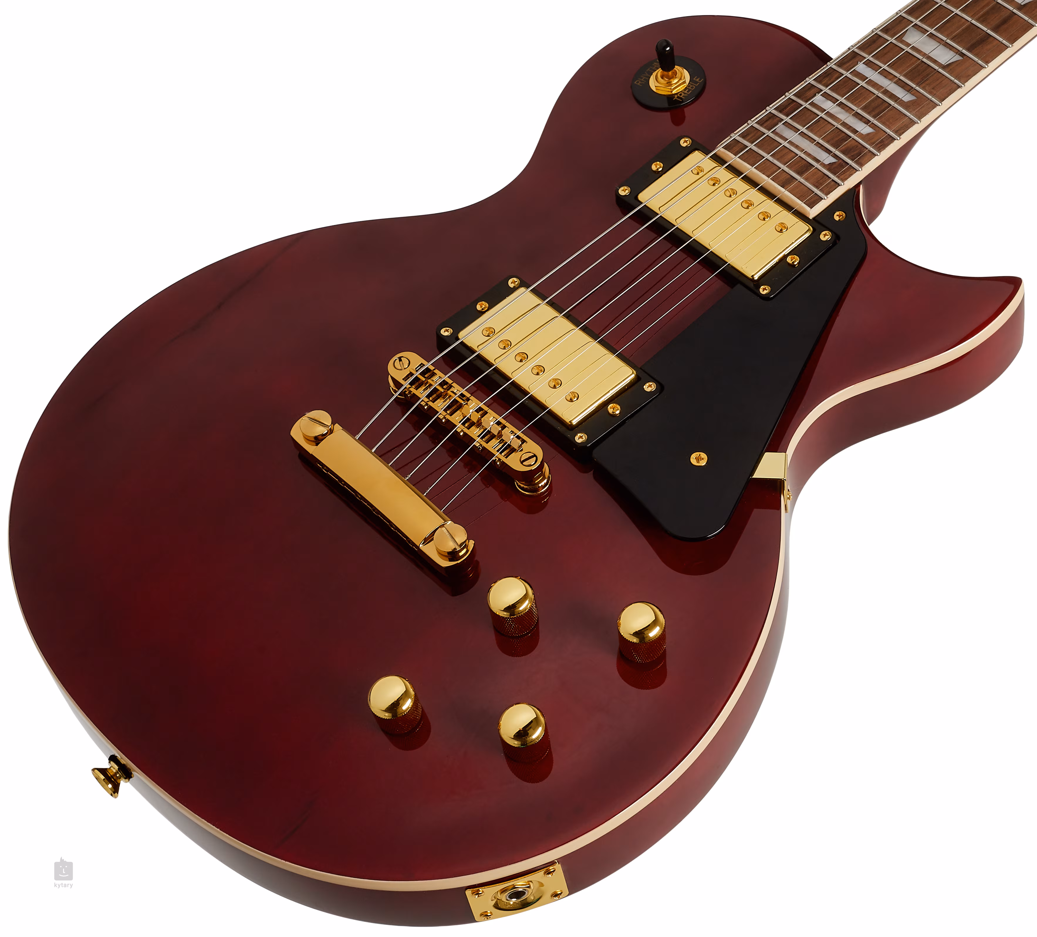 Dva humbuckery s Alnico V magnety poskytují kytaře krásně šťavnatý plný zvuk, který oceníte v rocku a dalších hudebních stylech. Jeho charakter/barvu upravíte pomocí ovladačů hlasitosti, tónové clony a třípolohového přepínače snímačů. Struny jsou uchyceny ve firemních ladicích mechanikách a přes pevnou kobylku ve struníku. Stylové zpracování podtrhuje pickguard a hardware ve zlatém provedení.
