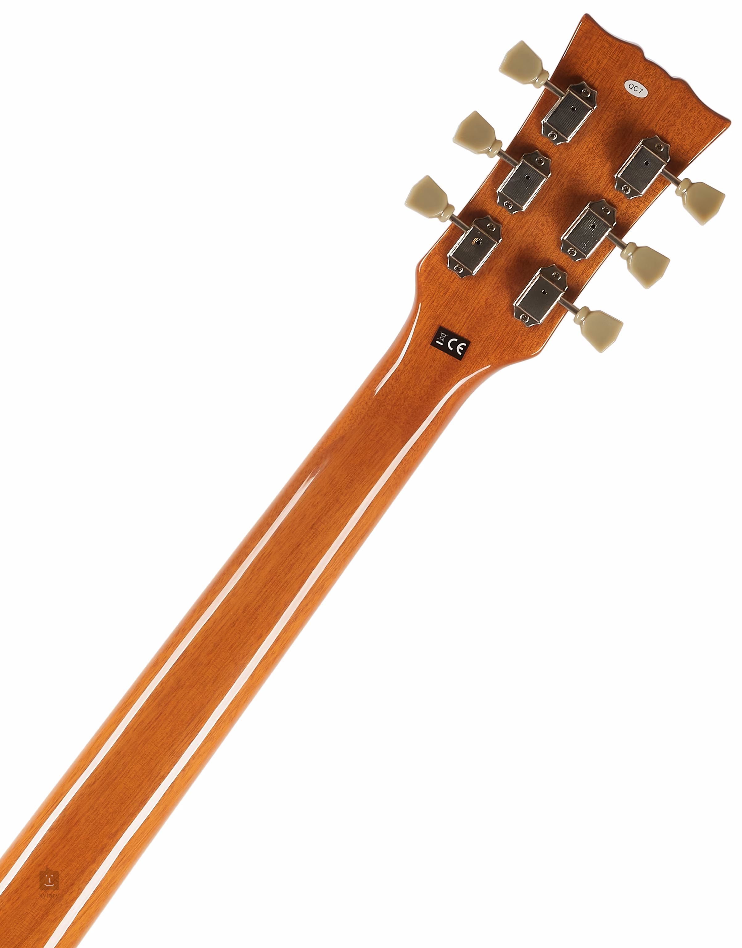 Mahagonové tělo kytary zdobí efektní vrchní dýha z fládrovaného javoru. Ke krku z okoumé je přilepen hmatník z fíkovníku osazený dvaadvaceti pražci. Orientaci na hmatníku usnadňují polohové bloky.