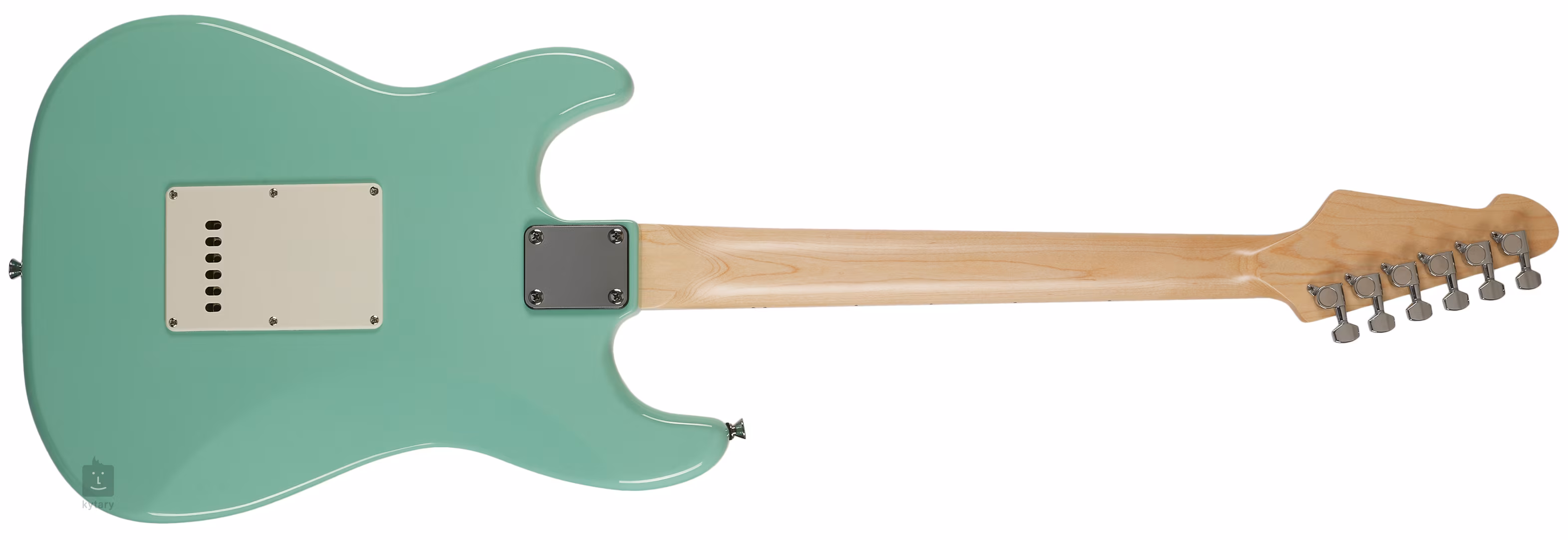 Struny jsou uchyceny v die-cast ladicích mechanikách a synchronizovaném tremolu. Stylové zpracování podtrhuje bílý pickguard a chromovaný hardware.