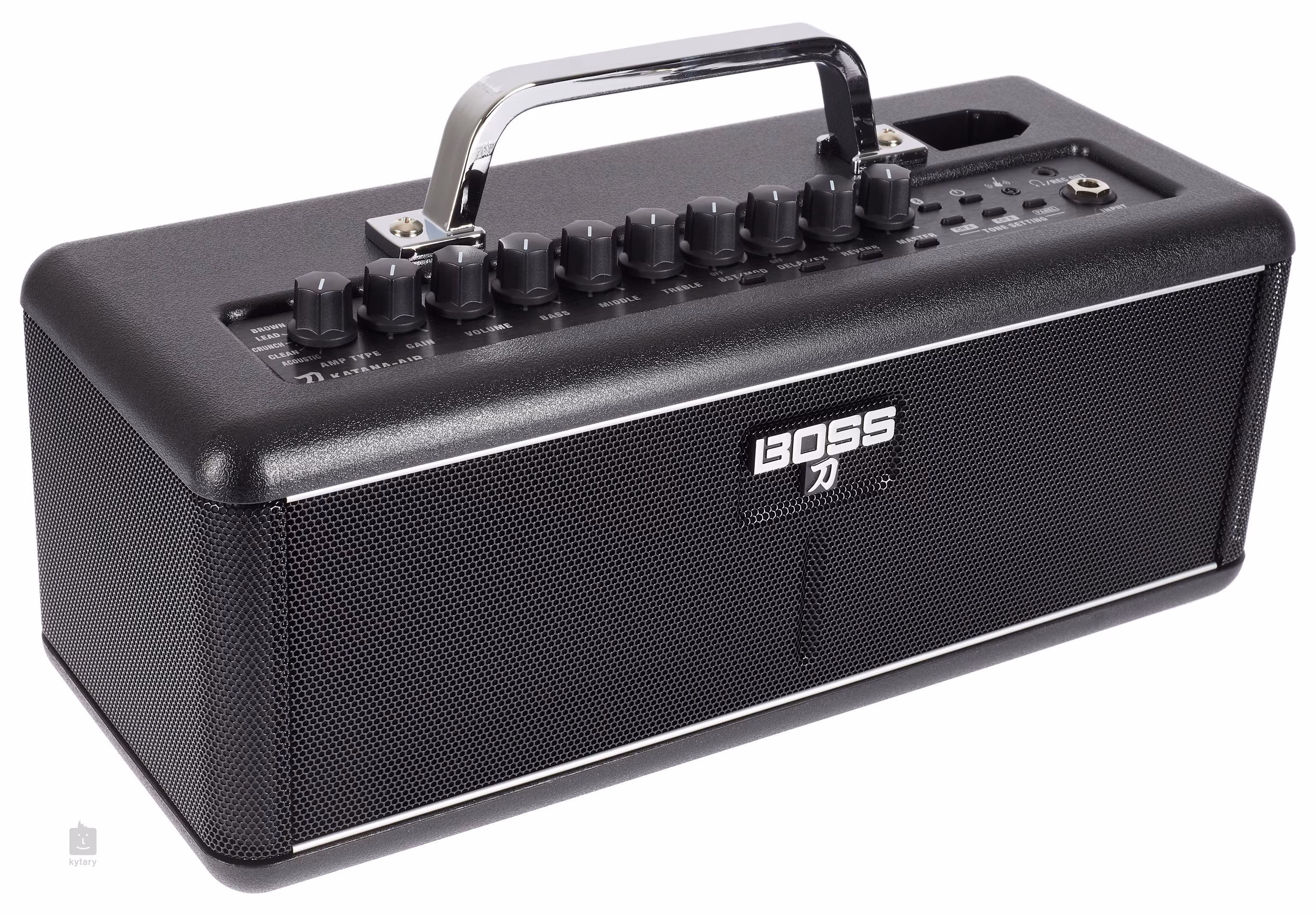 Bezdrátové hybridní kombo Katana-Air japonské společnosti Boss vás jednou provždy zbaví povinnosti nosit s sebou kabely – ať už nástrojové, propojovací, síťové či adaptéry. Jedná se o zcela bezdrátové zařízení kompaktních tvarů s možností napájení bateriemi, solidním zvukem s ultra nízkou latencí a kvalitními digitálními efekty včetně simulací aparátů. Technologie Bluetooth umožňuje volné streamování hudby, skrze aplikaci Tone Studio (operační systémy iOS nebo Android) upravovat jednotlivé zvukové parametry ovladačů komba nebo z knihovny Boss Tone Central stahovat jednotlivé zvuky (patche).