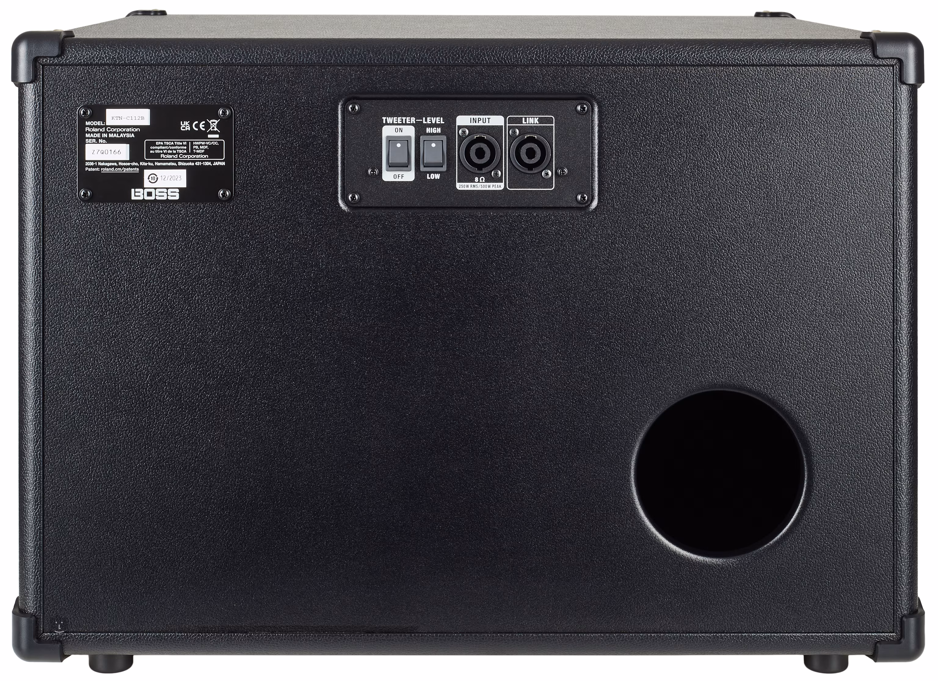 Basový reprobox Katana C112B od společnosti Boss je navržen pro profesionální použití a nabízí vysoký výkon 500 W v kompaktním provedení. Tento kabinet je vybaven 12-palcovým basovým reproduktorem Eminence série Neodymium, který zajišťuje silné a definované basy, vysokofrekvenčním tweeterem s možností vypnutí a dvěma přednastavenými úrovněmi pro optimální přizpůsobení zvukového profilu. Reprobox také obsahuje vstup pro reproduktory a propojovací konektor, což umožňuje snadné spojení s dalším kabinetem pro rozšíření zvukové sestavy.