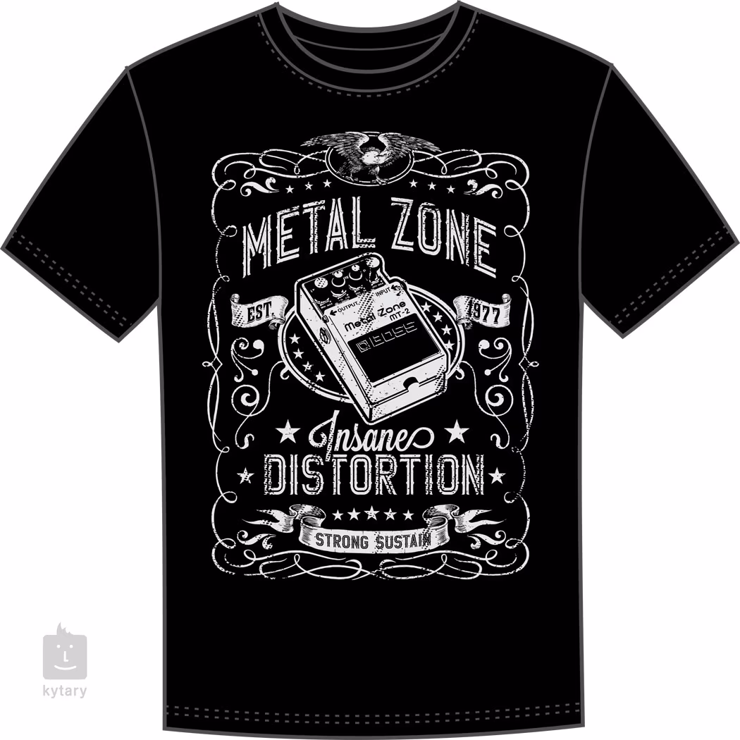 Černé tričko ze stoprocentní bavlny s motivem legendární metalové distortion krabičky Boss Metal Zone MT-2, která pomáhala tvarovat zvuk metalových kapel a jejich nahrávek v 90. letech minulého století. A kdo tvrdí že ne, ten ji má jistě v pedalboardu dodnes. Trička jsou k dispozici ve velikostech Small, Medium, Large, XL a XXL.