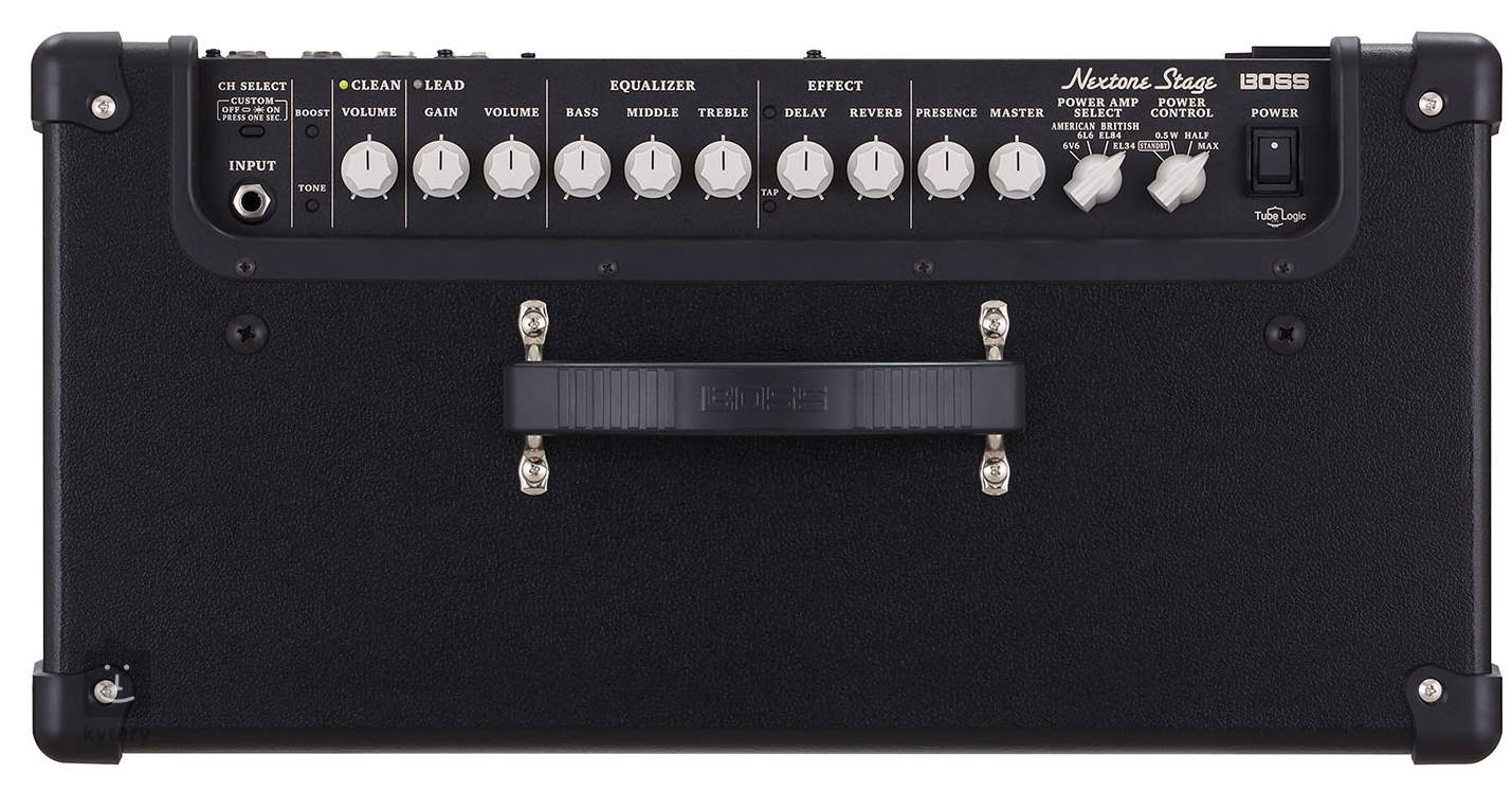 Boss Nextone Stage je dvoukanálové tranzistorové kombo s jednoduchým designem a výkonem 40 wattů, který díky jeho flexibilitě a široké škále funkcí oceníte v každé situaci (živém hraní, zkoušení, nahrávání, domácím cvičení). Představuje ideální volbu pro hráče, co hledají komplexní aparát s kvalitami lampových zesilovačů/komb a zároveň maximální spolehlivostí a minimálními nároky na údržbu.