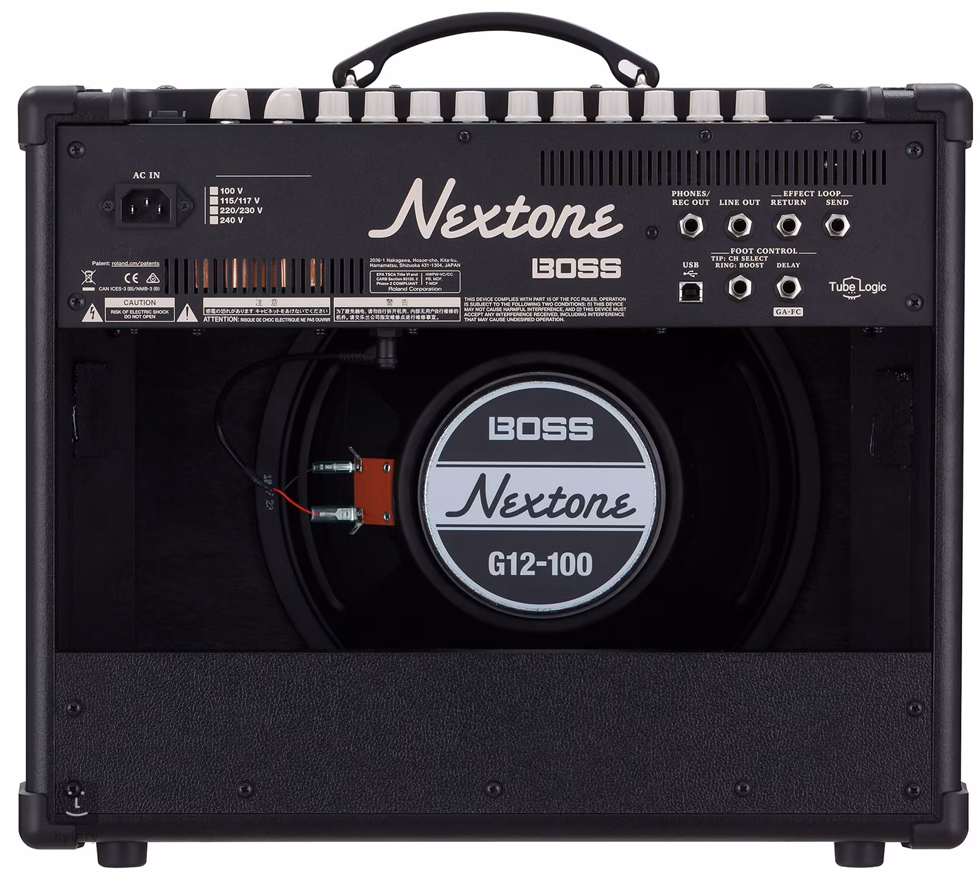 USB rozhraní na zadním panelu umožňuje přímé nahrávání do DAW, re-amping a propojení se softwarem Nextone Editor, kdy můžete dát upravovat zvuky presetů (v režimu Custom Mode) a volit mezi typy Delay (Analog, Tape, SDE-3000) a Reverb (Plate, Spring, Hall) efektů. Zadní panel komba dále nabízí vstup/výstup efektové smyčky pro integraci vašich oblíbených krabiček (kytarových efektů), dva výstupy pro footswitche (nejsou součástí balení), výstupy do externích reproboxů (1x 8 ohmů, 2x 16 ohmů), linkový výstup a výstup do sluchátek pro tiché a nerušené hraní. U přímých výstupů, tj. linkového, sluchátkového a USB, lze nastavit v programu Nextone Editor jednu ze tří simulací mikrofonního snímání kabinetu (Air Feel).