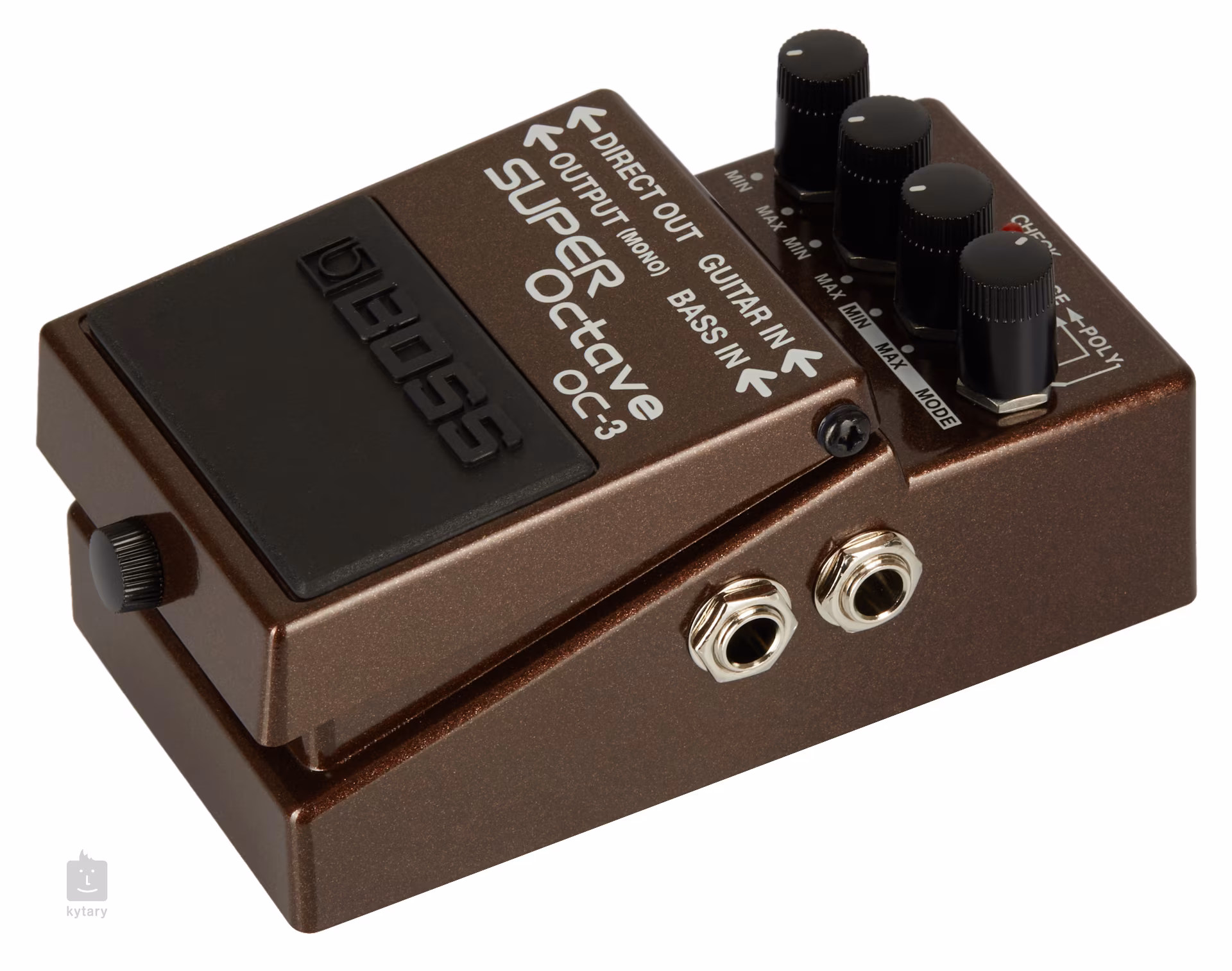 Boss OC-3 Super Octave je polyfonní oktavér v kompaktním těle pedálového efektu se třemi zvukovými režimy, který ocení kytaristé i basáci (krabička disponuje samostatnými vstupy pro kytaru a baskytaru). V prvním modu Poly Octave krabička umožňuje ovladačem Range nastavit pole působnosti efektu, tj. aplikovat zdvojení spodní oktávou např. pouze na tři spodní, basové, struny a vrchní nechat bez efektové modulace. Druhý režim Oct 2 nabízí harmonický trojhlas s přidanou suboktávou pro opravdu hutný lofi sound. Poslední mod Drive přidává k efektu, tj. přidané spodní oktávy, zkreslení, jehož míru nastavíte ovladačem Drive.