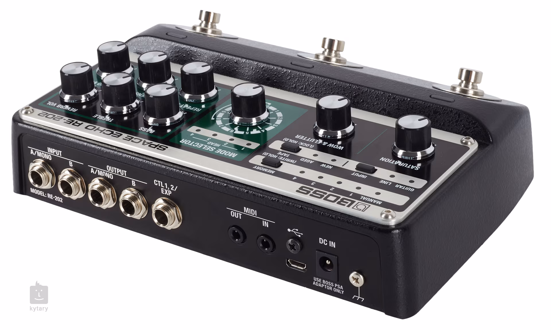 Legendární analogové páskové echo Roland RE-201 Space Echo vyráběné mezi lety 1974 a 1990 se vrací ve formě komplexního delay pedálu BOSS RE-202 s řadou přidaných moderních funkcí.