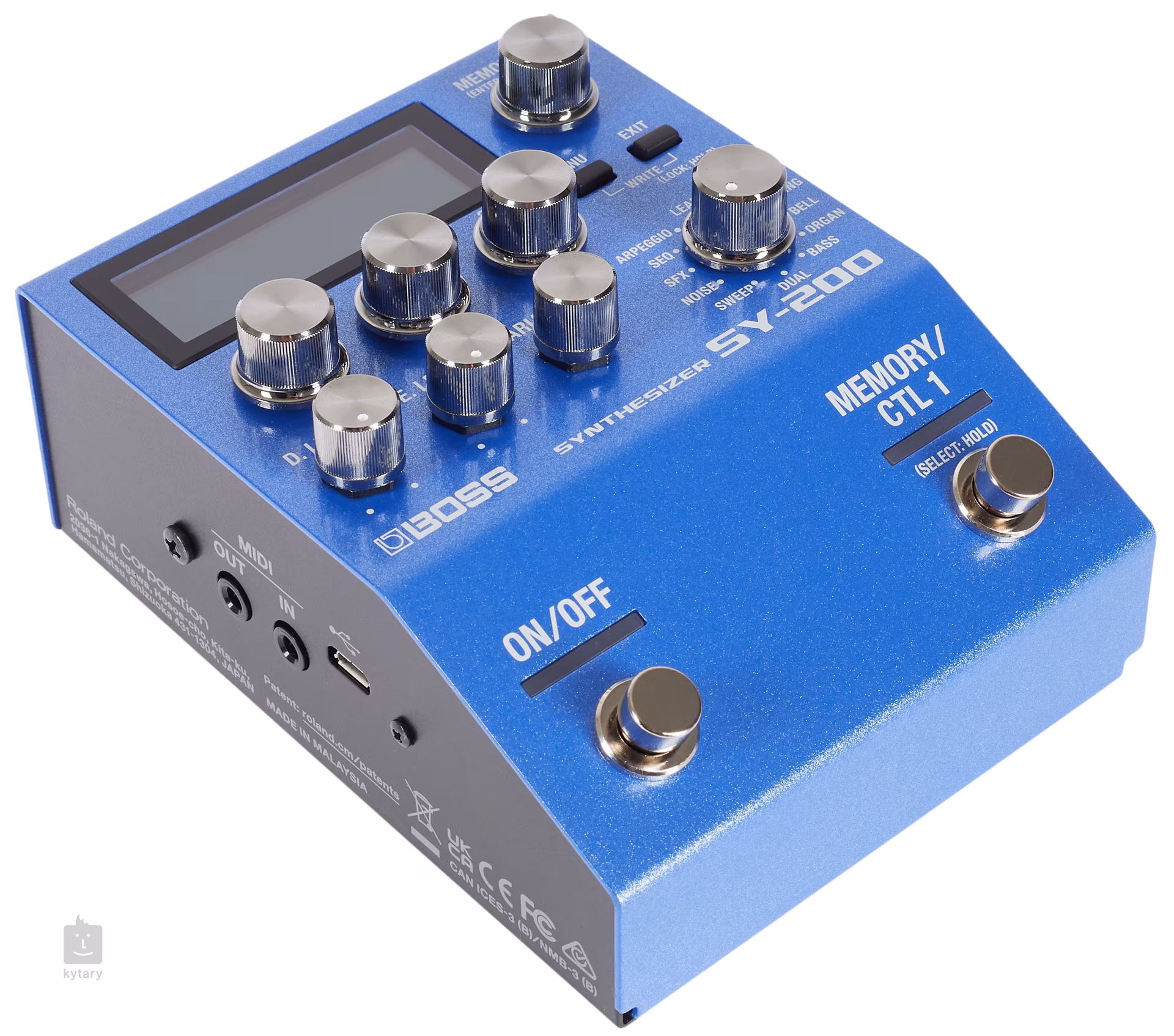 SY-200 disponuje dvanácti analogovými zvuky se třemi parametry pro vytvoření vašeho unikátního zvuku. S těmito zvuky můžete vytvořit až 171 různých variací, takže si efekt vždy přizpůsobíte vašim preferencím a potřebám. Váš zvuk si potom můžete uložit do jednoho ze 128 presetů. Hlavní ovládací panel nabízí přehledný displej s otočnými knoby, dvěma nožními přepínači a přepínačem 12 synth zvuků. Boční a zadní strana potom obsahuje flexibilní konektivitu s linkovým vstupem a výstupem, efektovou smyčkou, MIDI In/Out, vstupem pro expression pedál a USB portem pro připojení PC či laptopu (jen pro firmware update). Součástí balení jsou 3x AA baterie.