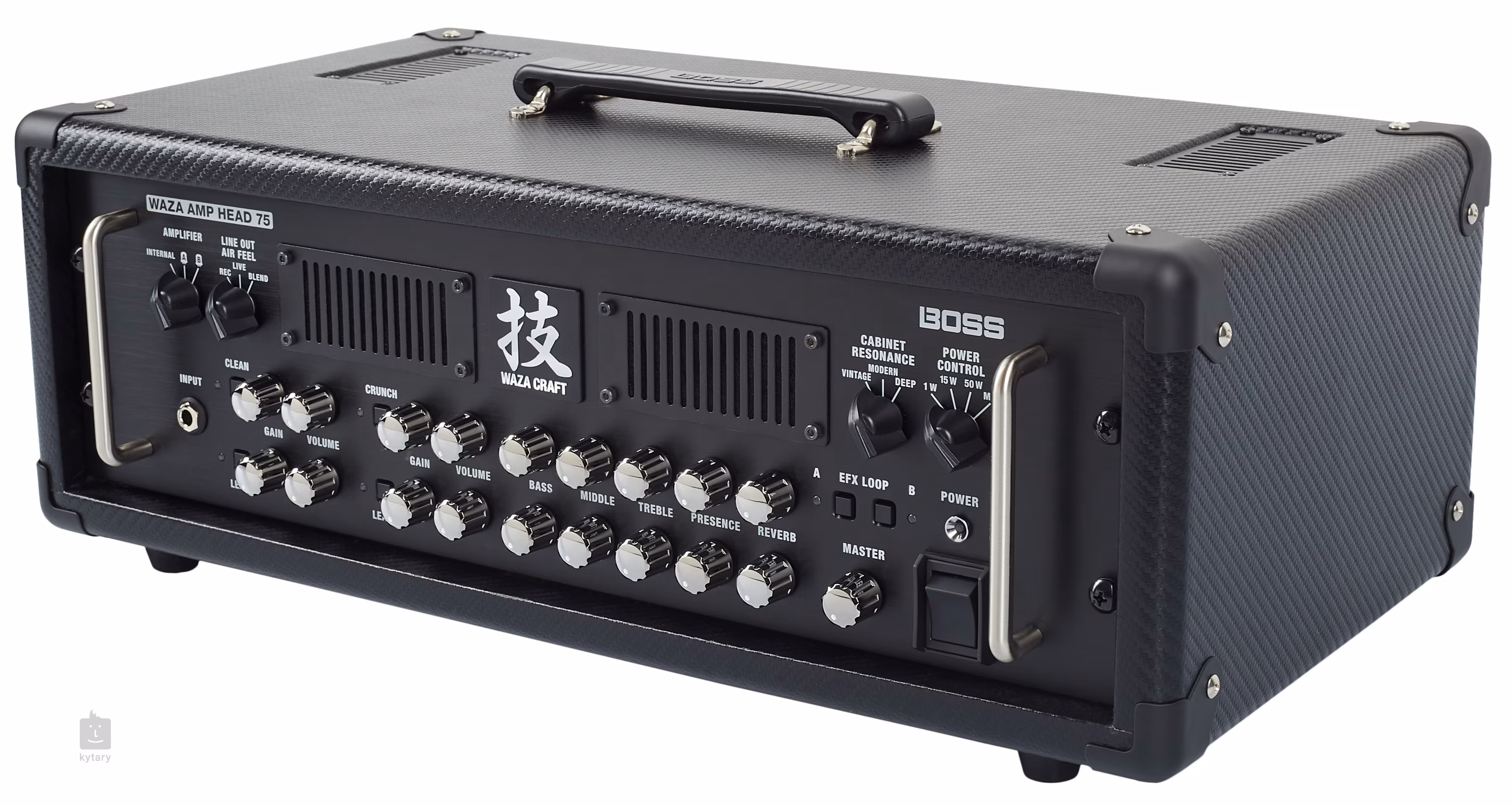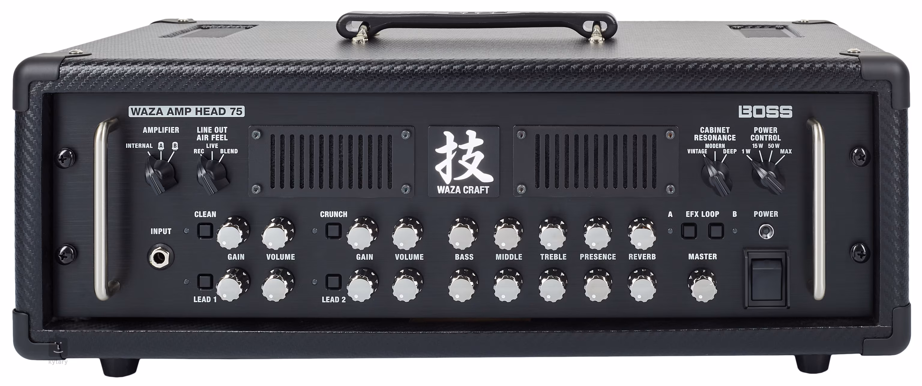 Waza Amp Head 75 je vlajkovou lodí mezi zesilovači firmy Boss. Všechny produkty ze série Waza se vyrábějí přímo v Japonsku za velmi přísných podmínek a s použitím těch nejkvalitnějších materiálů. Jde tedy o aparáty, na které se můžete stoprocentně spolehnout a jedny z nejlepších výrobků na trhu.