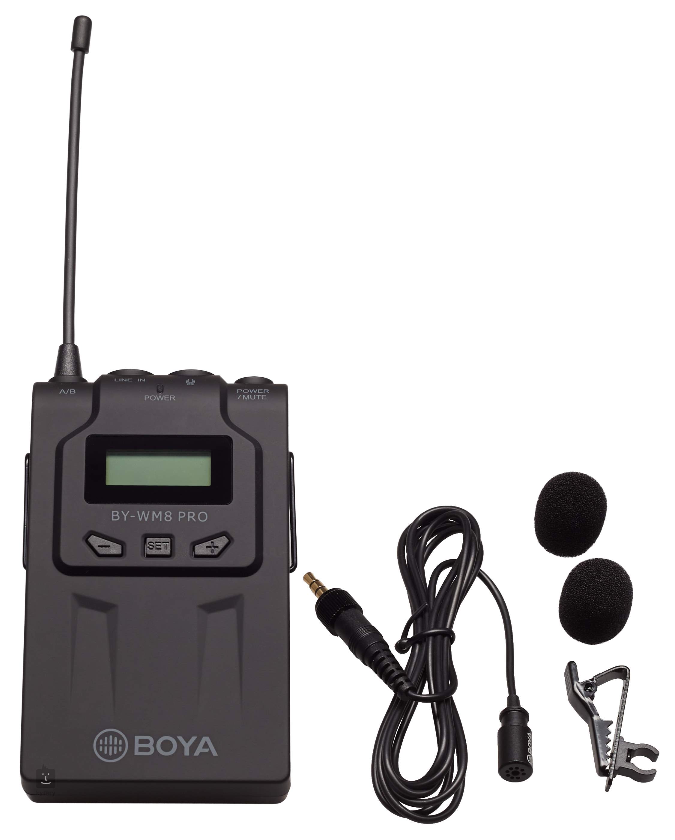 Bezdrátový vysílač s klopovým mikrofonem, kompatibilní s přijímači RX8 a SP-RX8 Pro.