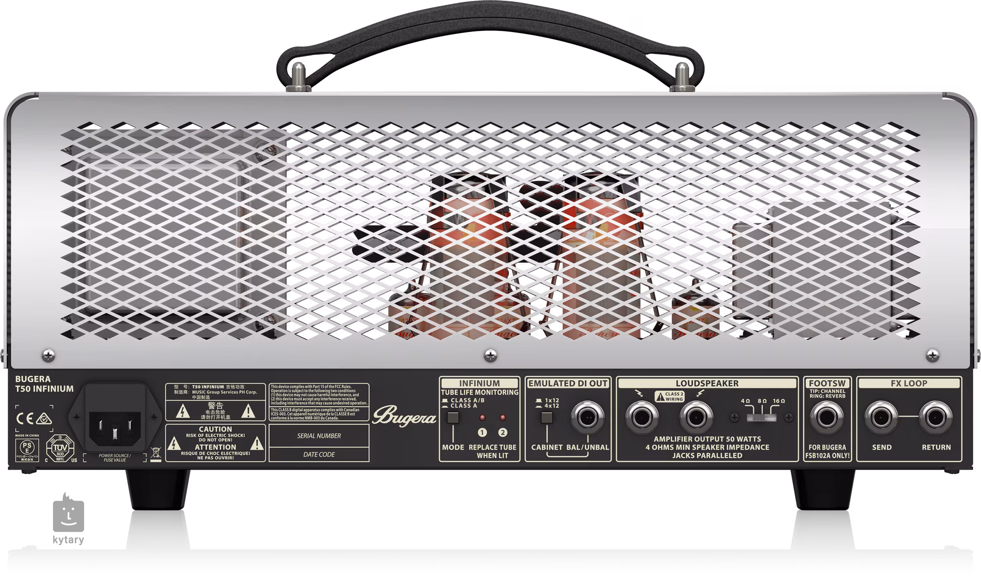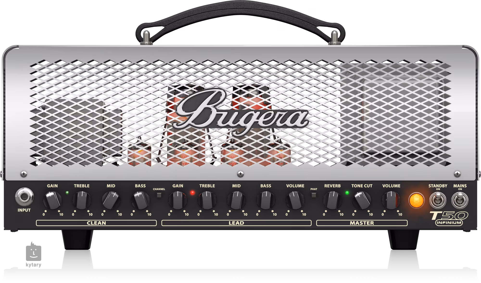 Bugera T50 INFINIUM je dvoukanálový Class-A/AB kytarový lampový zesilovač s výkonem 50 wattů, který oceníte ve zkušebně, na stage i ve studiu. Charakteristika Clean kanálu přechází od čistého zvuku po jemné overdrive nakreslení, Lead kanál pokračuje na škále od rockového overdrive po agresivní metalové hi-gain distortion zkreslení.