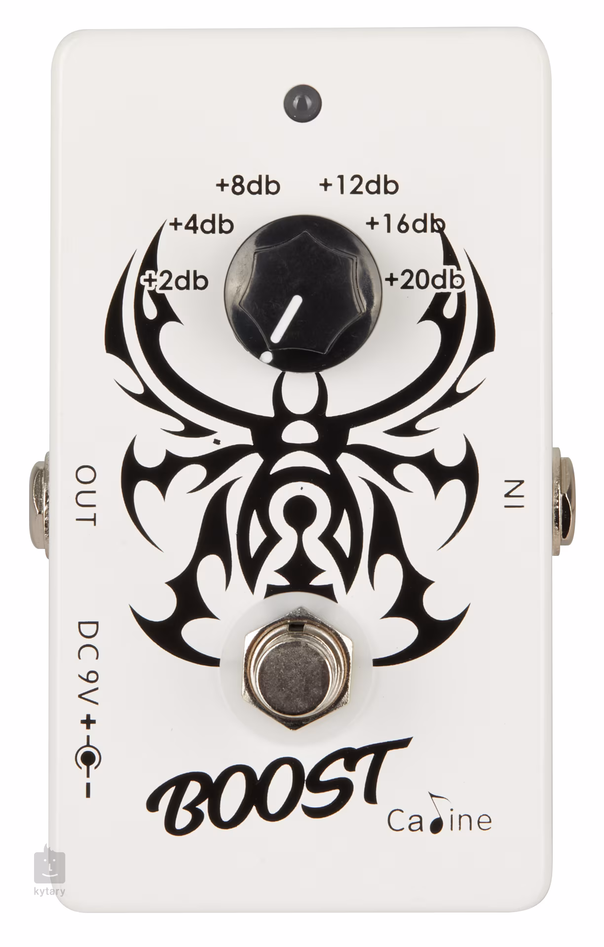 CP-97 „Villain“ Boost je kompaktní kytarový efekt z produkce čínské značky Caline, který poskytne vašemu kytarovému zvuku zesílení (volume jump) v rozmezí od +2dB do +20dB. Veškerá elektronika pedálu je zasazena v odolném hliníkovém šasi. Krabička pracuje v režimu true-bypass, takže ve vypnutém stavu neovlivňuje průchozí signál. K napájení slouží 9V adaptér nebo 9V baterie.