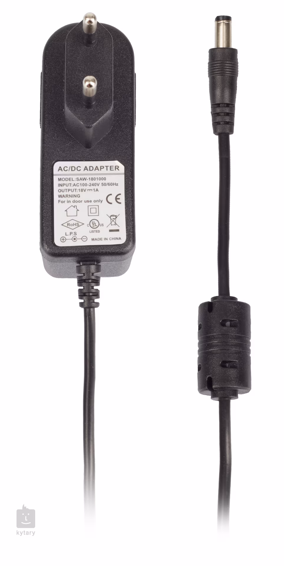 Napájecí adaptér čínské značky Caline s napětím 18 V (center negative) a maximálním odběrem 1000 mA.