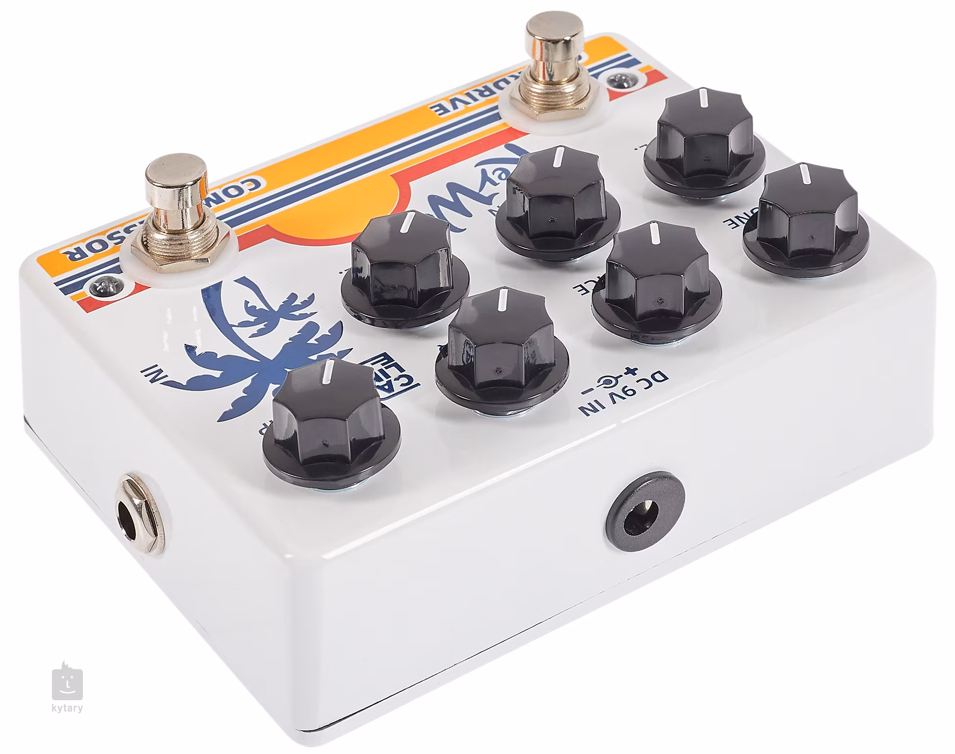 Pedálový efekt Caline Key West spojuje v jednom šasi kompresor s transparentním lo-gain overdrive pedálem. Kompresor vám pomůže vytvarovat váš kytarový tón přesně podle vašich představ. K tomu účelu slouží ovladače krabičky určující sílu výstupního signálu, charakter/barvu tónu a míru komprese/dynamiky. Samostatně aktivovatelný transparentní overdrive s dvoupásmovým ekvalizérem dodá vašemu kytarovému zvuku větší lesk.