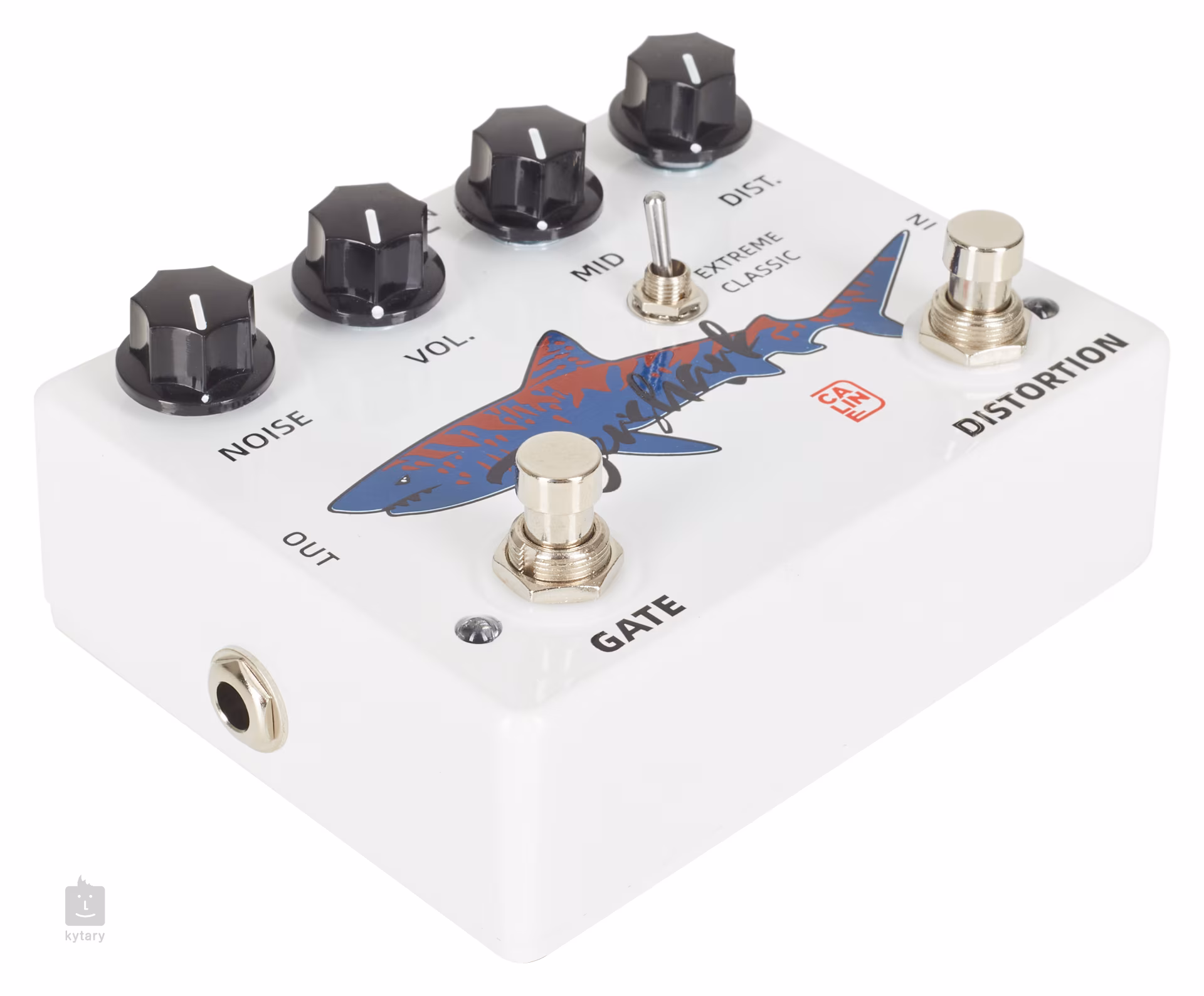 Pedálový efekt Caline Tigershark spojuje v jednom šasi dva designy Caline pedálů – obvod hi-gain distortion efektu CP-77 Heavy Metal a praktický jednoduchý noise gate CP-39 The Noise, kterým jednoduše odfiltrujete šum spojený s distortion pedály a větším zkreslením. Veškerá elektronika pedálu je zasazena v odolném hliníkovém šasi. Krabička pracuje v režimu true-bypass, takže ve vypnutém stavu neovlivňuje průchozí signál. K napájení slouží 9V adaptér. Čínská značka Caline nabízí kytarové efekty s příznivým poměrem ceny a výkonu. Její produkty tak představují skvělou volbu pro začínající kytaristy a hráče s omezeným rozpočtem, kteří ovšem požadují kvalitní zvuk a zpracování. To vše krabičky od této značky splňují.