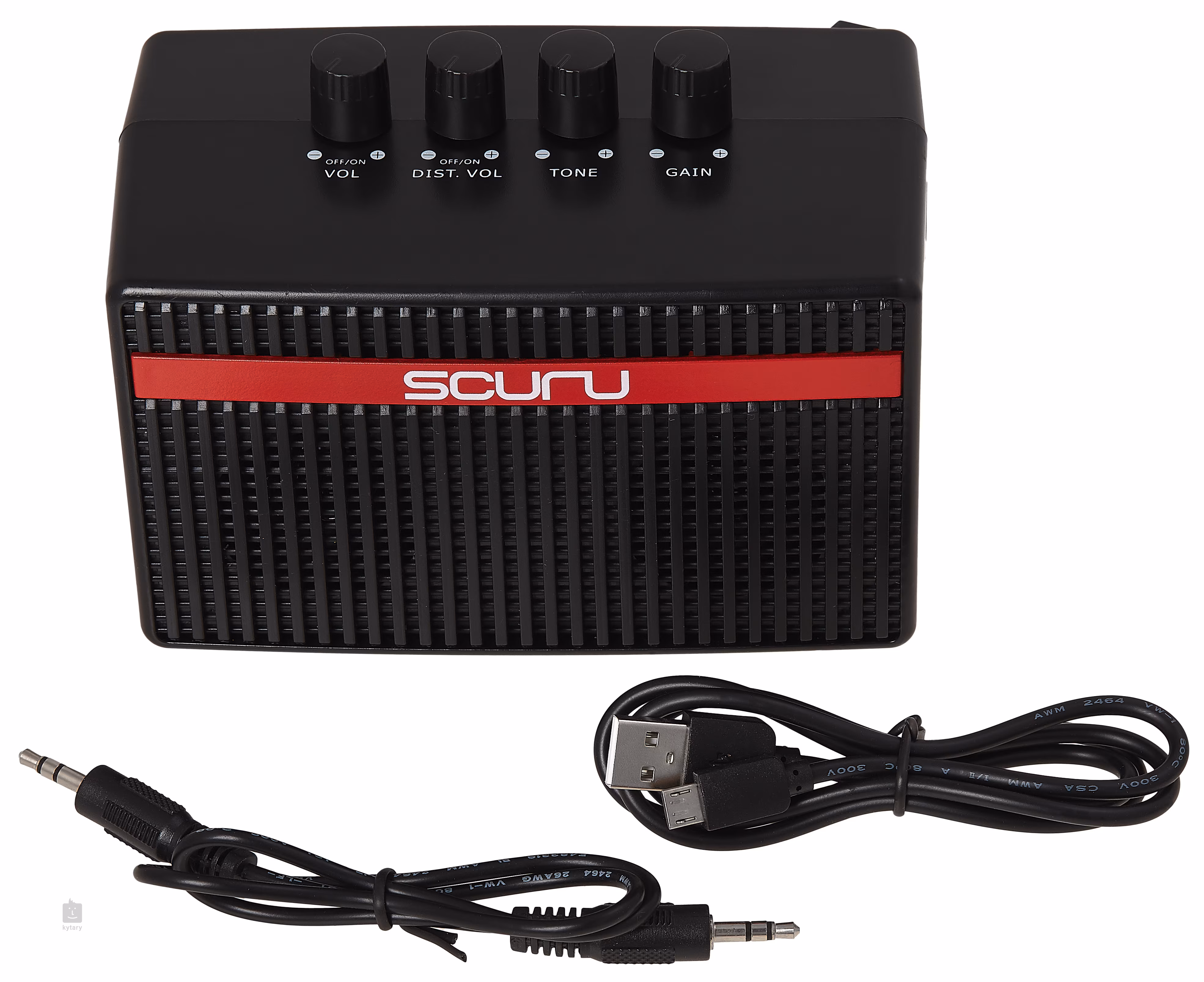 Dvoukanálový mini aparát Joyo Scuru S1 čínské značky Caline představuje ideálního pomocníka na domácí cvičení a společníka na cesty. Nabízí dva kanály v tradiční konfiguraci čistého a zkresleného zvuku se standardními možnostmi úprav, nabíjení bateriemi (životnost 5-6 hodin) nebo pomocí USB nabíječky nebo PC/notebooku, výstup do sluchátek pro tiché a nerušené hraní a Aux In pro vaše audio/mp3 zdroje a jammování do podkladů pouštěných např. z vašeho telefonu.