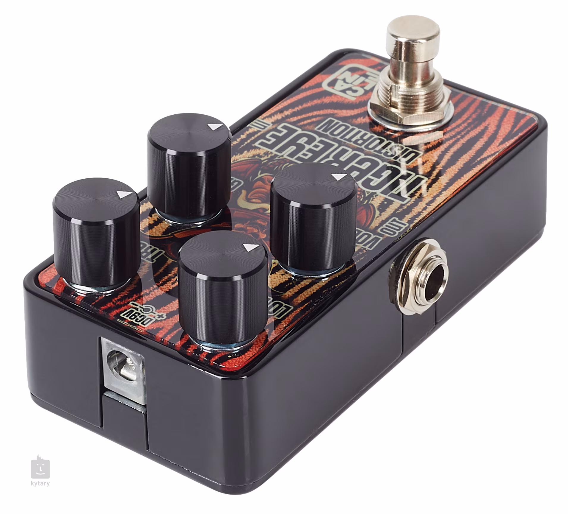 Tiger Eye Distortion je kompaktní pedálový efekt typu distortion z řady G Series značky Caline. Jedná se spíše o mid-gain distortion, který více ocení hráči ukotvení v 80´s hard rocku a klasickém heavy metalu než milovníci extrémnějších metalových odnoží. Nabízí dvoupásmový ekvalizér v podobě ovladačů Treble a Lo Mid, kterými upravíte odezvu ve výškách a nižších středech/basech. Zbylými potenciometry nastavíte výstupní hlasitost a množství zkreslení. Pedálový efekt je zapojen jako true-bypass, takže ve vypnutém stavu neovlivňuje průchozí signál. K napájení slouží 9V adaptér (není součástí balení). Odběr krabičky odpovídá 50mA.