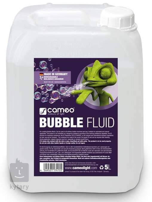 Bubble Fluid 5 l od společnosti Cameo je profesionální náplň do výrobníků bublin, která vám umožní zaplnit místnost odolnými a dlouhotrvajícími bublinami. Kapalina má objem 5 l, je netoxická, zdravotně nezávadná, biologicky snadno odbouratelná a nepoškozuje životní prostředí. Voda použitá na její výrobu byla 10x destilovaná, což zajišťuje, že se ve výrobníku nebudou usazovat zbytky náplně, čímž se několikanásobně prodlouží životnost vašeho zařízení.