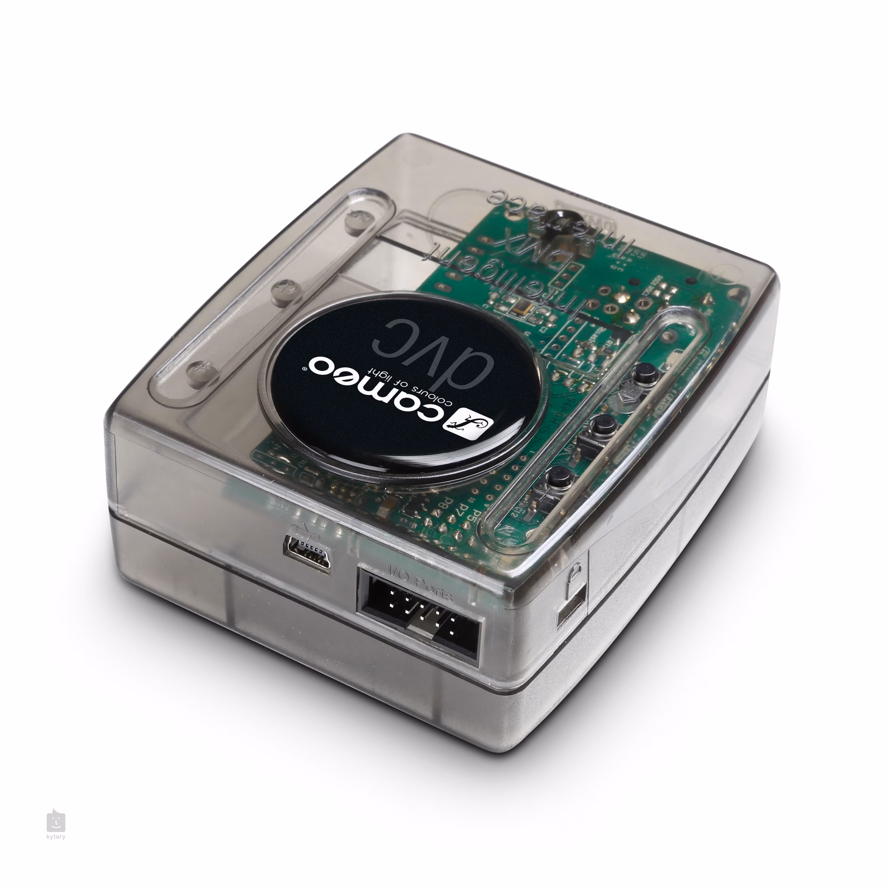 Cameo DVC 4 vám umožňí řídit jakékoli zařízení kompatibilní s DMX a to pomocí softwaru Cameo D 4 z počítače nebo Macu. Rozhraní Plug & Play poskytuje 512 DMX kanálů v živém režimu a obsahuje interní paměť pro 256 kanálů v samostatném režimu. To vám umožní zkopírovat programování světelného přehledu do jednotky a spustit jej bez počítače. Díky vstupu mini-USB a 3 pin výstupu DMX je DVC 4 napájen z USB portu počítače. Tři ovládací tlačítka umožňují volbu programu a stmívání v samostatném režimu, který vyžaduje standardní napájecí adaptér 5V USB.