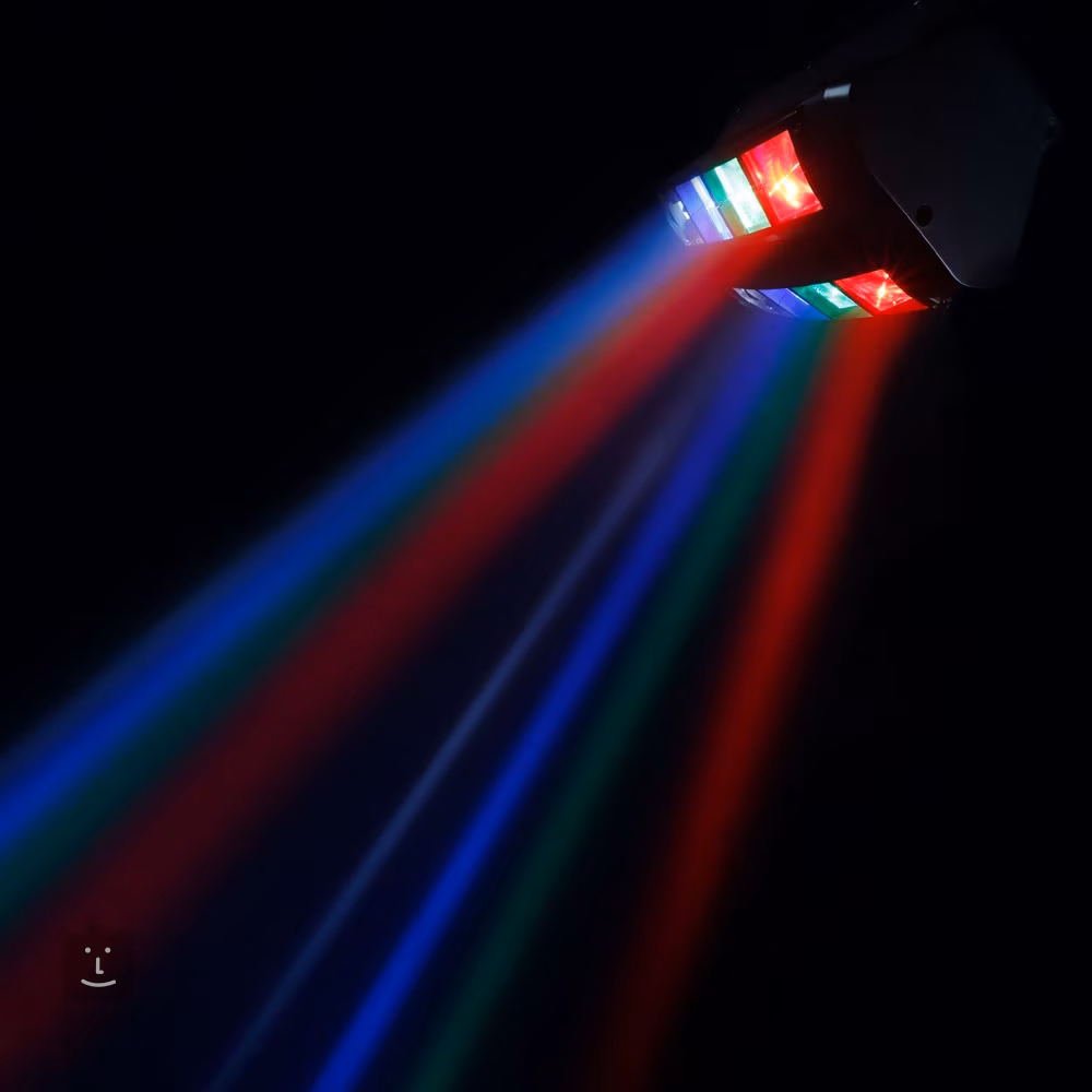 Samotné tříwattové LED diody seřazené po čtyřech do dvou pruhů mají vyzařovací úhel 4,5 stupně a přesné polohování náklonů těchto dvou světelných linií v rozsahu 270 stupňů zaručují spolehlivé motorky. Reflektor je vybavený funkcí zvukové aktivace a režimem Show, který nabízí širokou paletu již přednastavených vizuálních programů. K dispozici jsou také pulsní a stroboskopické efekty. Celé zařízení se ovládá pomocí čtyř navigačních tlačítek a jednoduchého LED displeje.