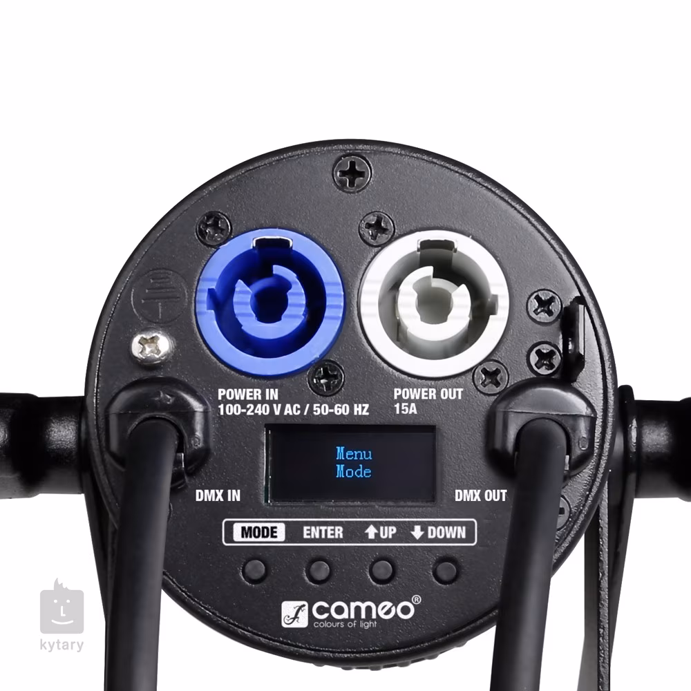 Zařízení lze ovládat prostřednictvím protokolu DMX nebo RDM. Dále můžete využít ovládání s pomocí Master/Slave, standalone nebo zvukové ovládání prostřednictvím integrovaného mikrofonu. Součástí balení je také dálkový IR ovladač. Zadní panel nabízí 3pinové DMX In/Out konektory a napájecí konektory PowerCon In/Out pro napájení a daisychain připojení. Dále zde naleznete přehledný OLED displej a čtyřtlačítkový ovládací panel. Zařízení má základní IP krytí IP20, takže je vhodné pouze pro použití ve vnitřních prostorách.