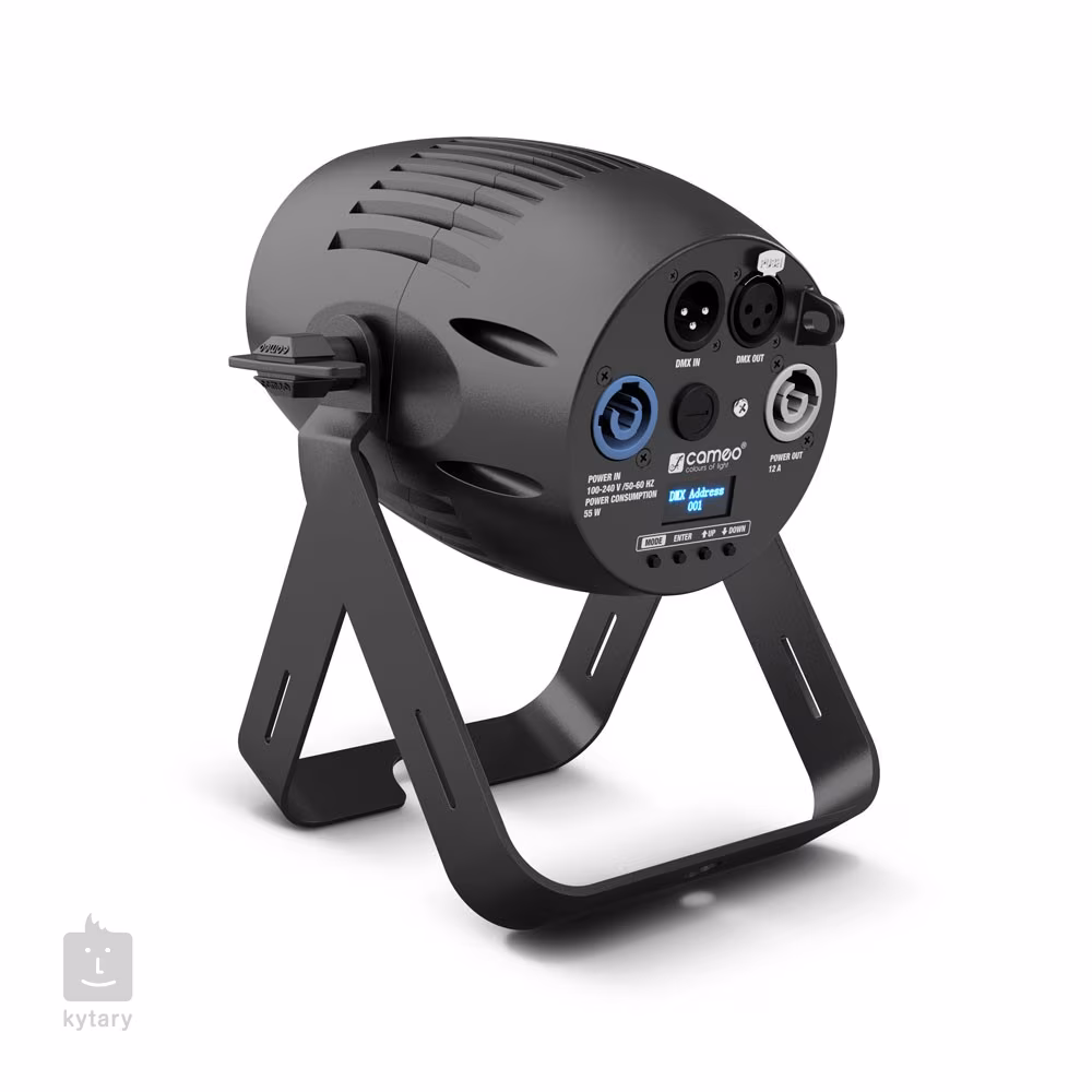 Zařízení lze ovládat prostřednictvím protokolu DMX nebo RDM. Dále můžete využít ovládání s pomocí Master/Slave, standalone nebo zvukové ovládání prostřednictvím integrovaného mikrofonu. Zadní panel nabízí 3pinové DMX In/Out konektory a napájecí konektory PowerCon In/Out pro napájení a daisychain připojení. Dále zde naleznete přehledný OLED displej a čtyřtlačítkový ovládací panel. Zařízení má základní IP krytí IP20, takže je vhodné pouze pro použití ve vnitřních prostorách. K reflektoru lze dokoupit dálkový IR ovladač.