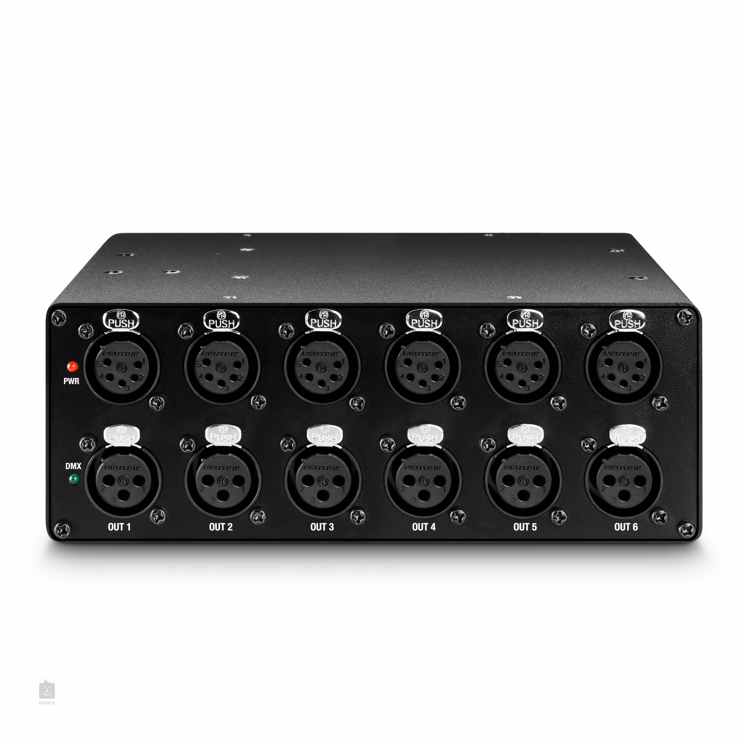 Profesionální šestikanálový DMX splitter a booster v jednom pro ovládání světelných reflektorů a výrobníků. Cameo SB 6 T RDM je kvalitní DMX splitter s šesti kanály, který vám umožní rozdělit DMX nebo RDM signál do šesti separátních výstupů. Každý z kanálů je vybaven vlastním ovladačem pro aktivaci boosteru, který vyrovnává ztráty výkonu, k nimž může dojít při distribuci. Zároveň je každý kanál osazen 3pinovým i 5pinovým DMX výstupem. Všechny výstupy jsou elektricky a opticky izolované.